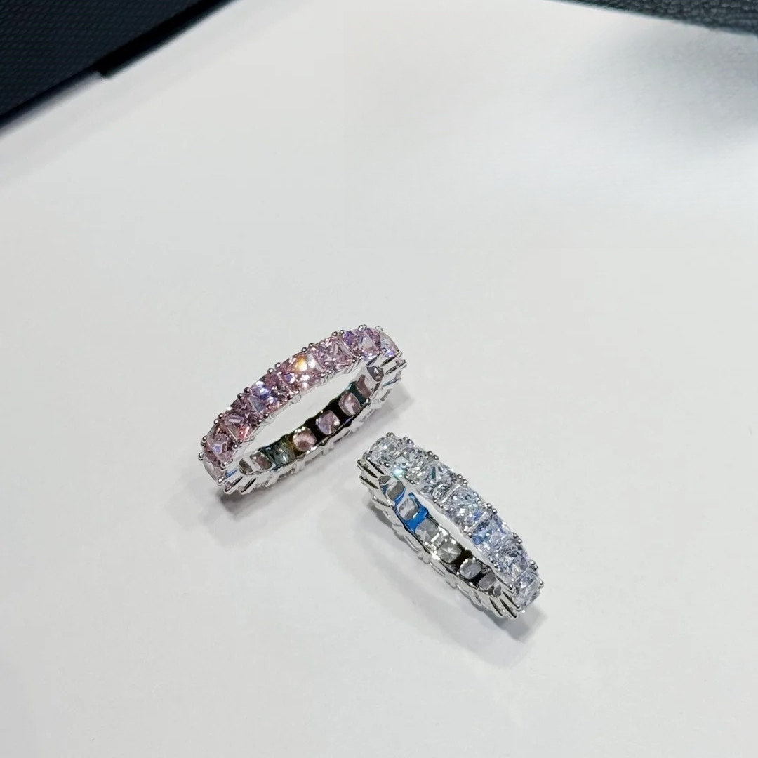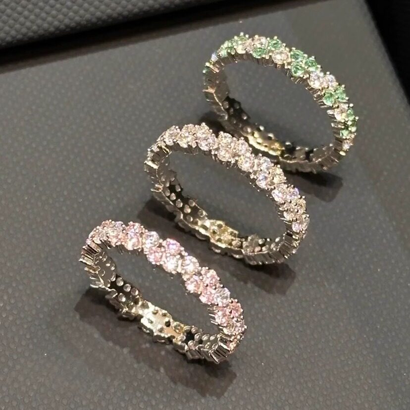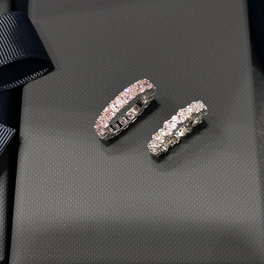 新品多巴胺密镶粉色绿色麦穗戒指玫瑰闪耀戒指闺蜜款粉色方糖戒指
