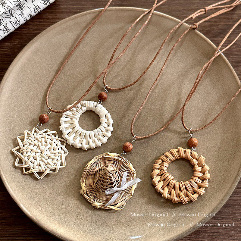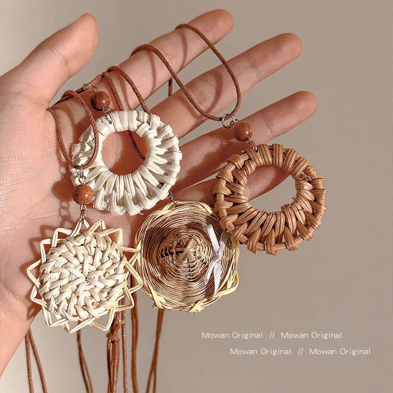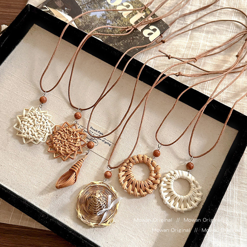 波西米亚藤草编织项链女款2026新款高级感轻奢小众长款锁骨链配饰