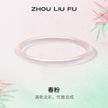 周六福粉白玉髓手镯圆条叮当镯新中式国风节日礼物送女友