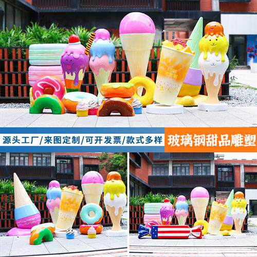 玻璃钢冰淇淋雪糕甜筒雕塑饮料店奶茶店甜品店商场美陈装饰摆件