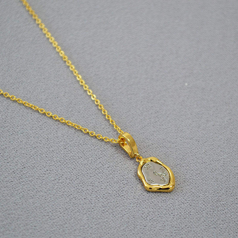 欧美小众设计金银撞色钟表时针520不规则椭圆简约个性气质项链女