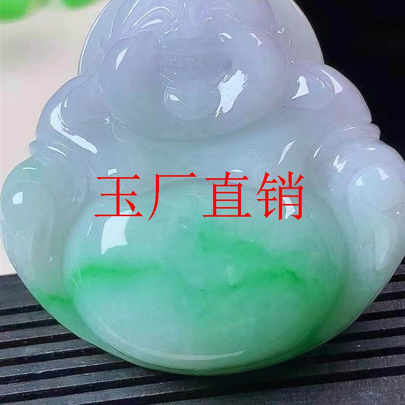 缅甸细糯种翡翠色弥勒佛挂件男女款紫罗兰飘花阳绿色项链佛公吊坠