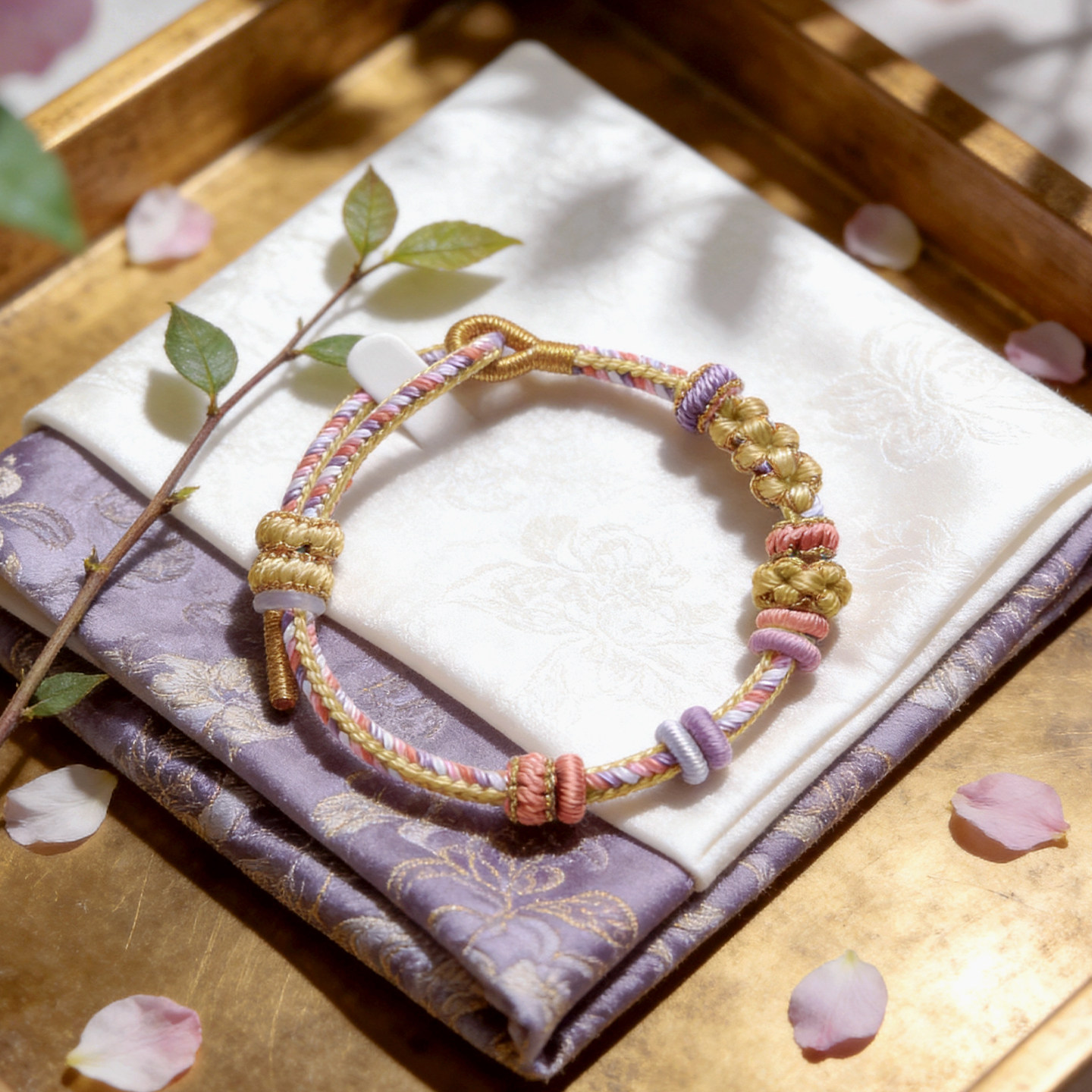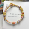 甜美风手工编织绳桃花黄色手绳可穿珠串黄金转运珠可调节编绳手链