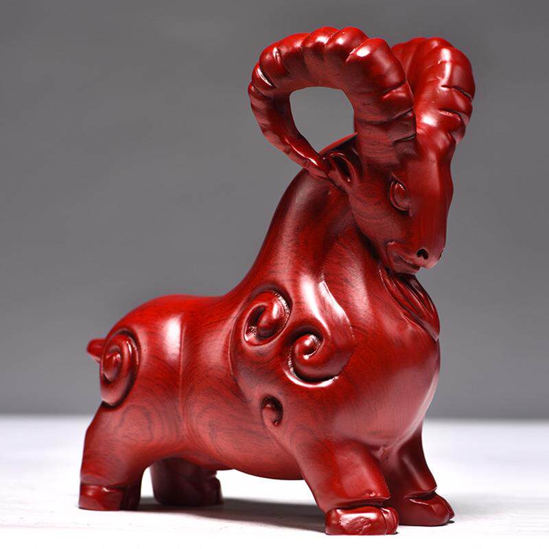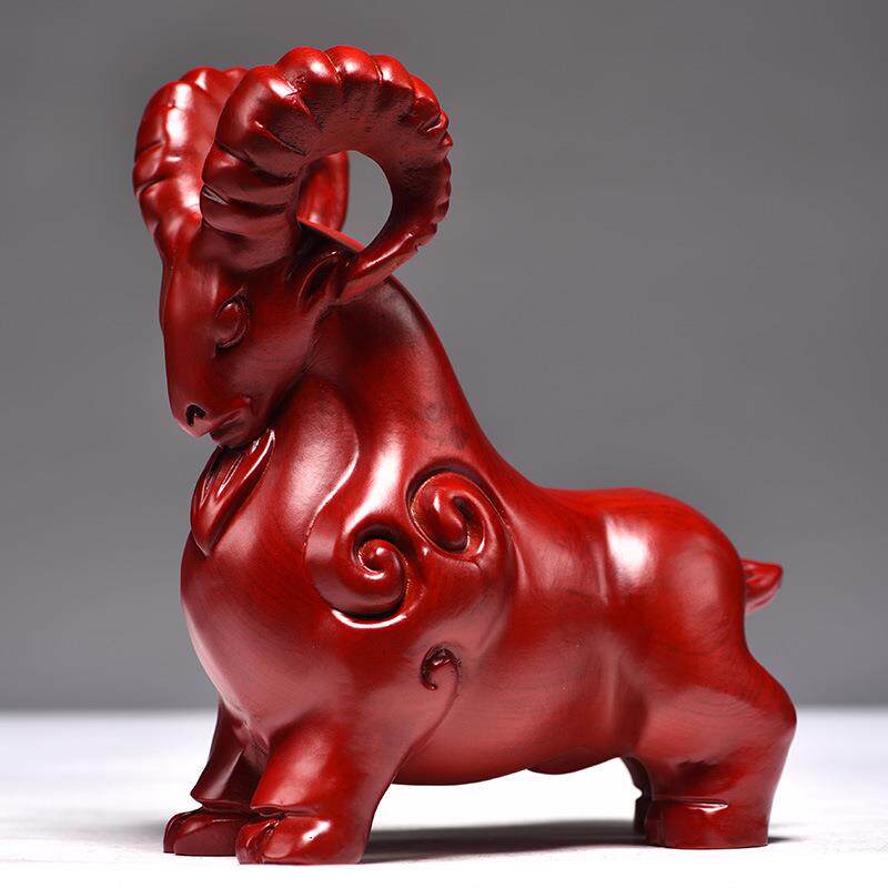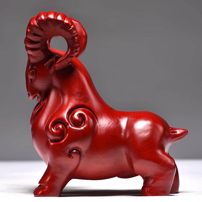 tq-1056红色二木质羊摆实木雕刻山羊艺羚羊十生肖办公家居件装饰