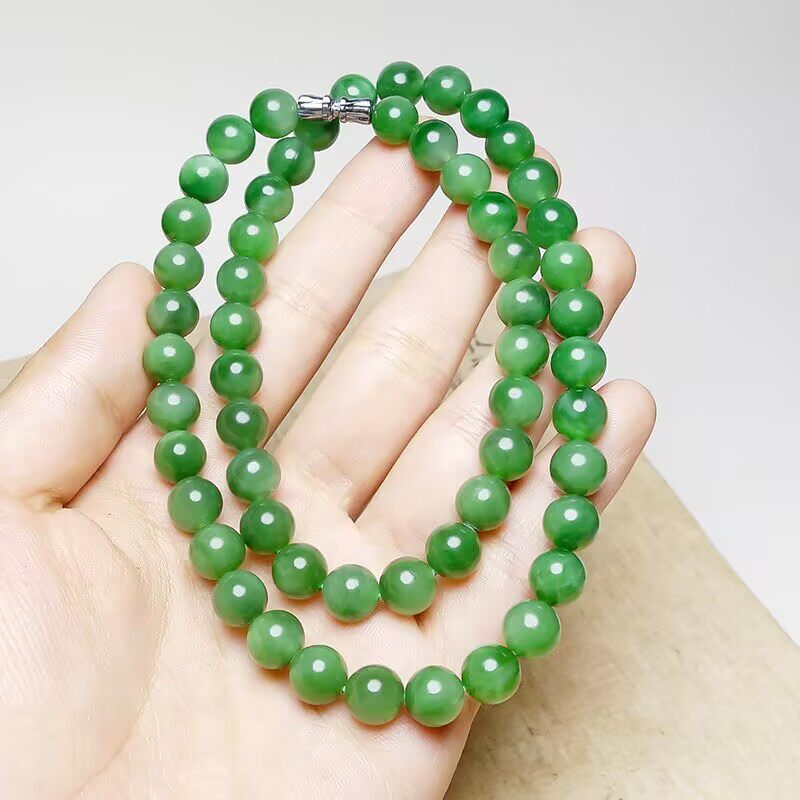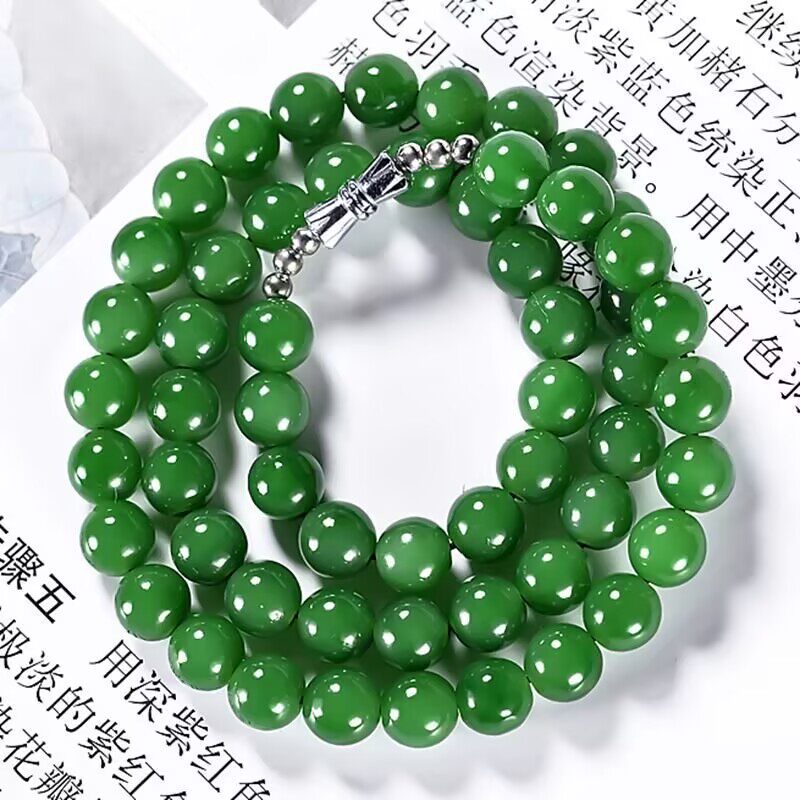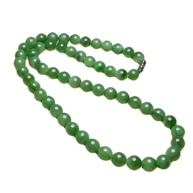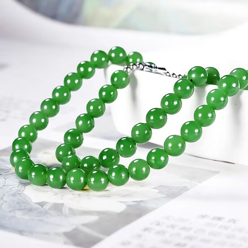 高端和田色玉石菠菜绿碧绿色玉项链帝王绿锁骨男女圆珠佛珠送礼