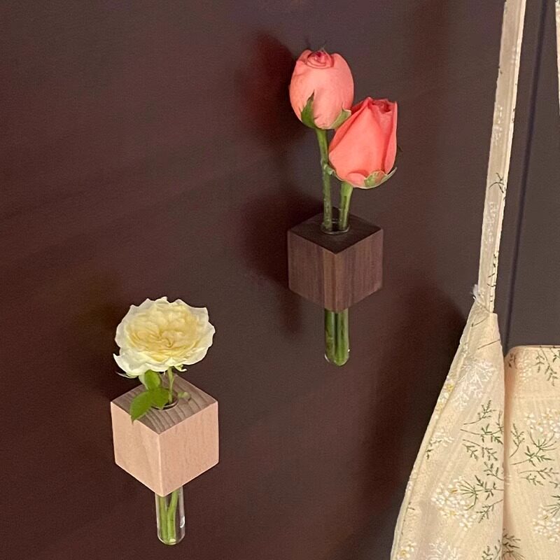 实木创意插花器高级感冰箱贴磁贴装饰立体种花养花亚克力试管花瓶