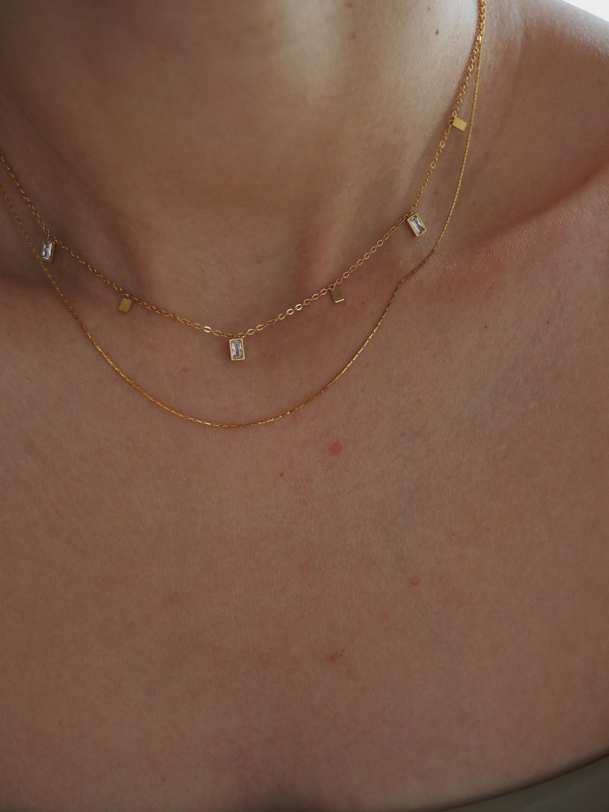 闪钻吊坠精致小巧项链女细款钛钢镀金锁骨链18K金轻奢小众高级感
