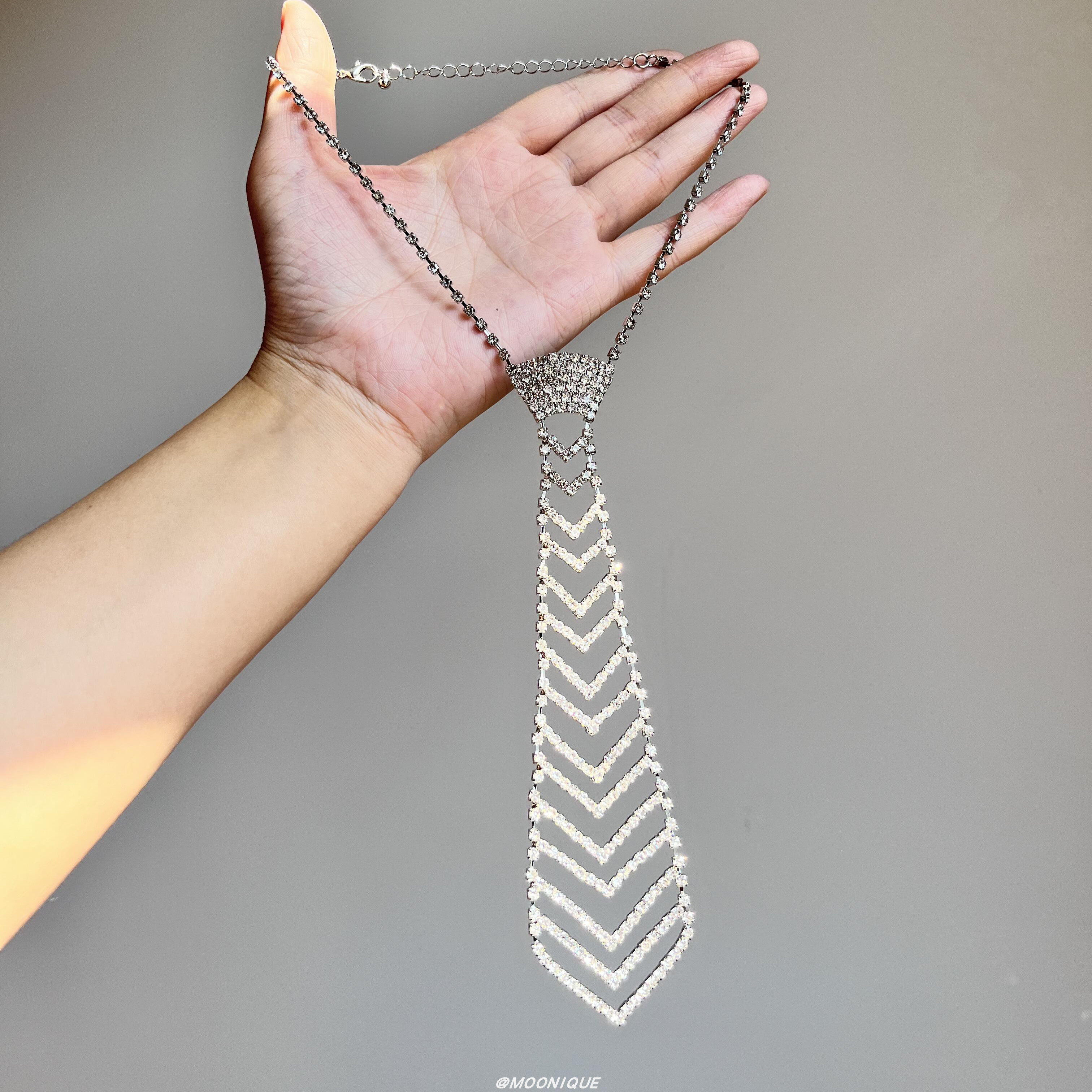 中古vintage闪钻镂空线条镶钻领带个性创意百搭礼服西装配饰项链