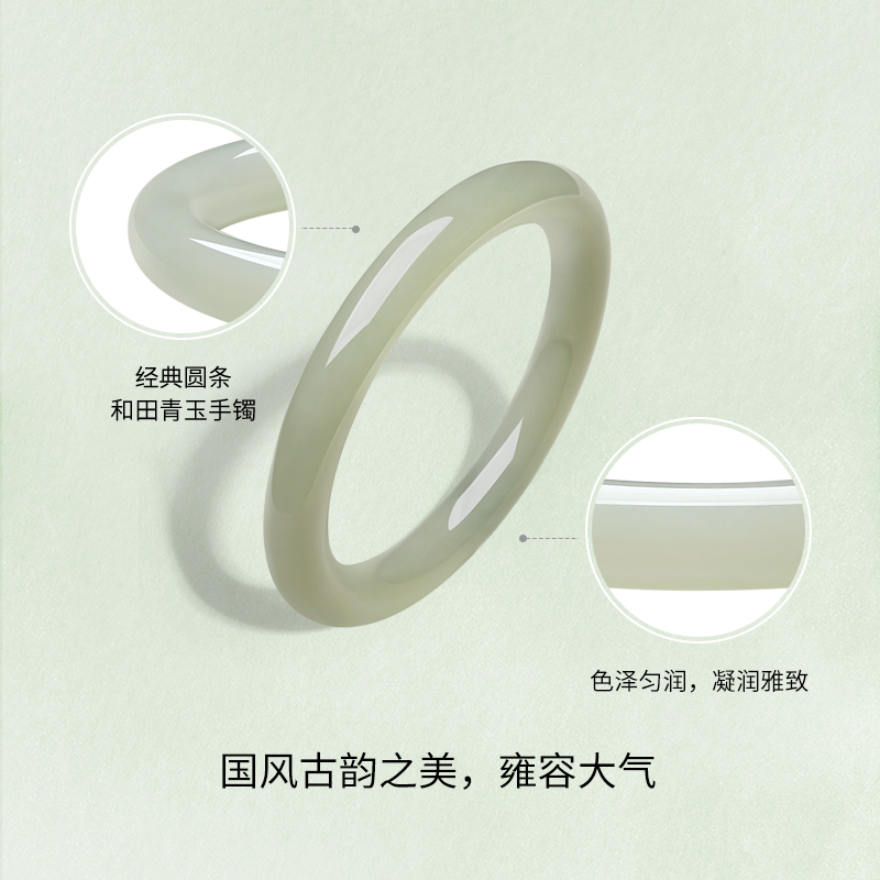 周六福和田玉手镯女显白和田青玉福镯手饰温婉美玉镯节日礼物