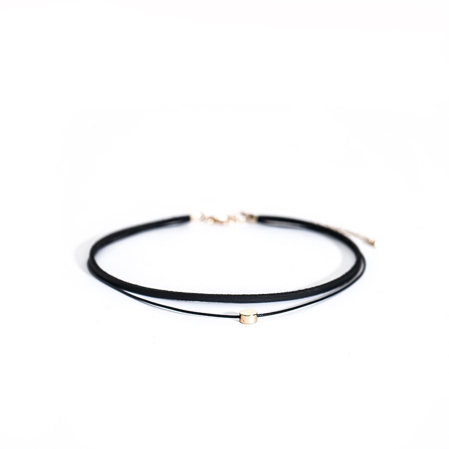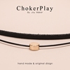 日韩双层细choker黑色皮绳金色吊坠锁骨链原宿金豆颈带