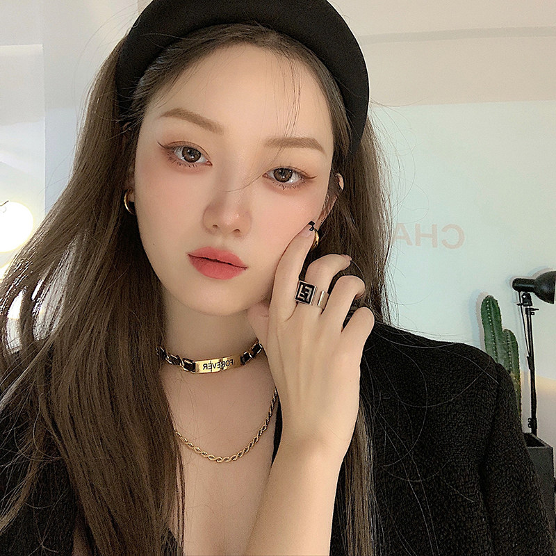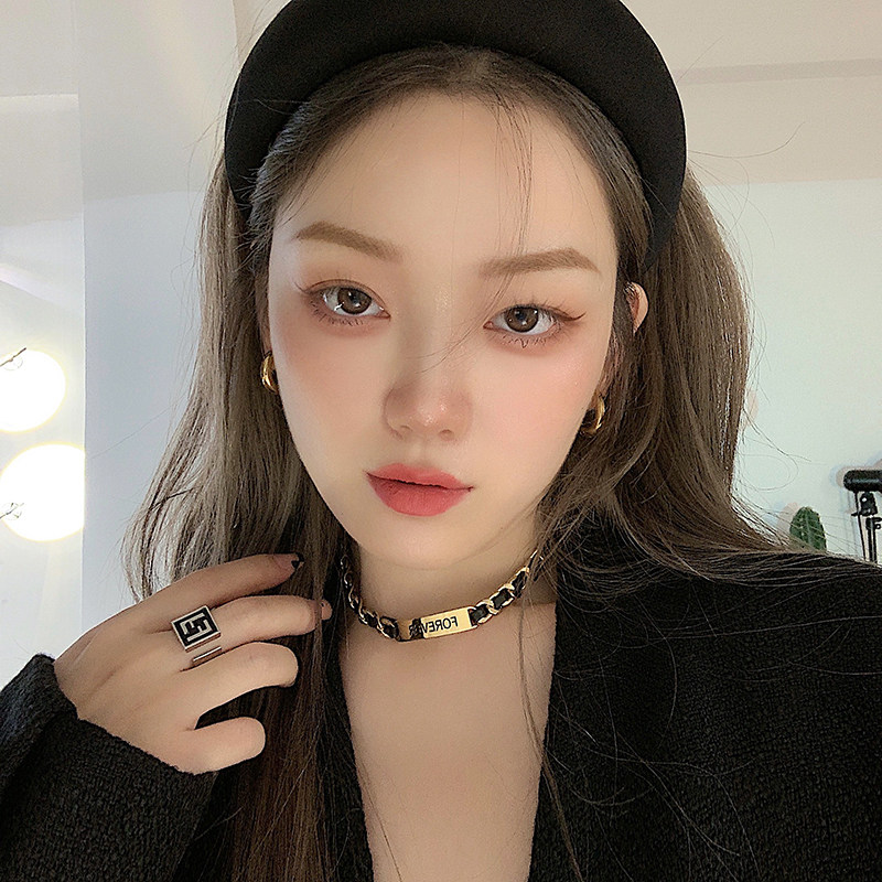 小众设计感皮质拼接字母钛钢项链网红黑色皮绳锁骨链时尚百搭颈链