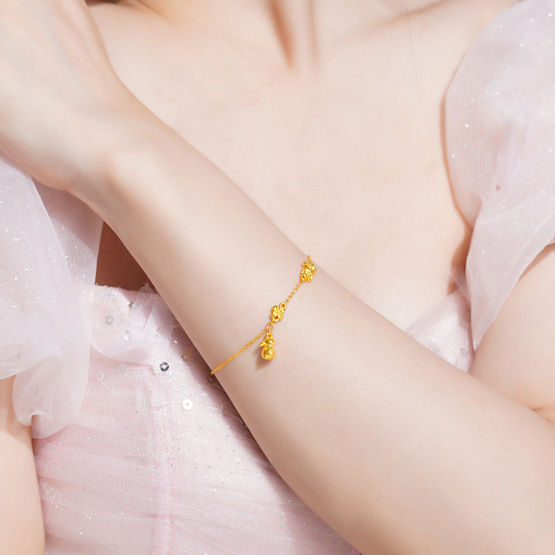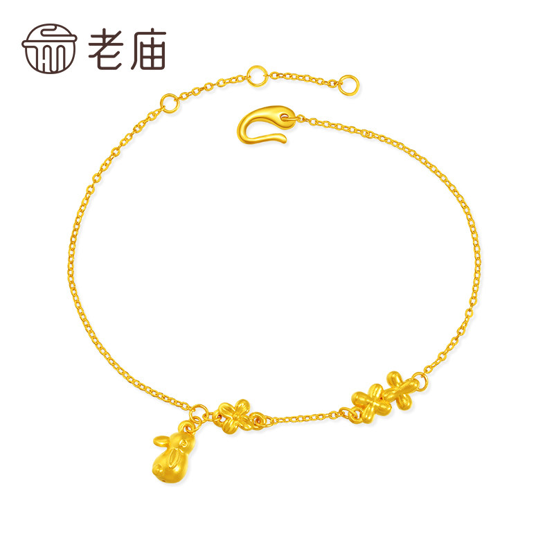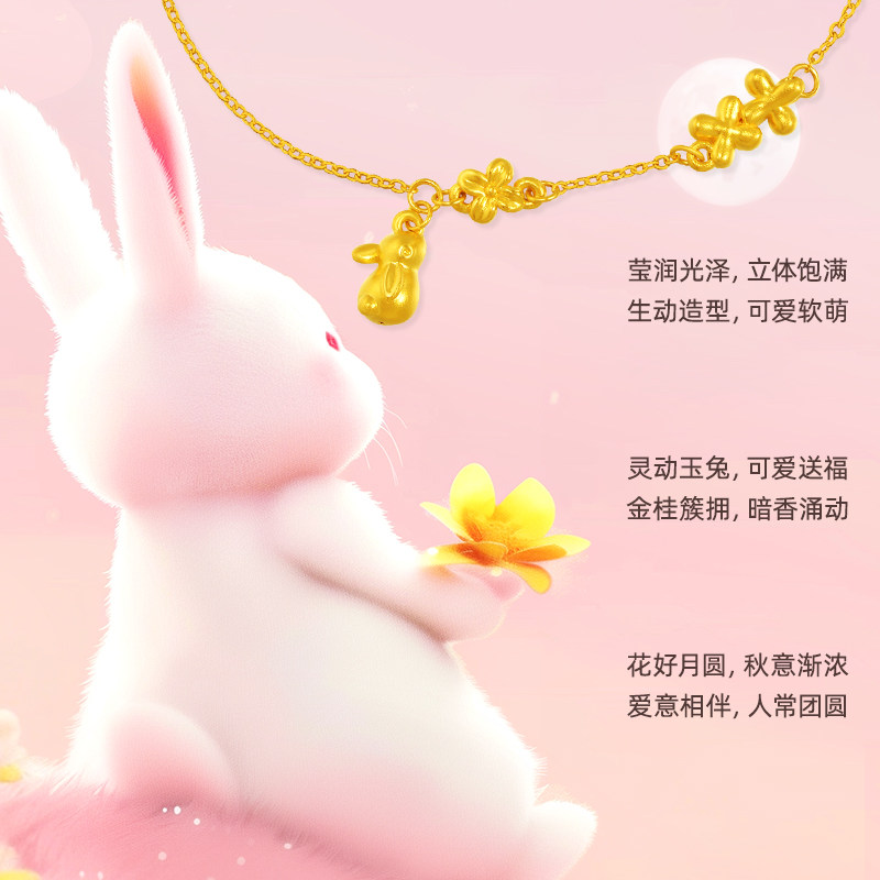 老庙黄金足金桂花萌兔手链5G工艺璀璨夺目悦己甄品团圆中秋送礼