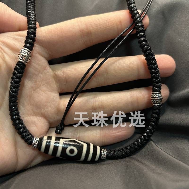西藏民族风高油三眼天珠藏传真3眼吊坠玛瑙天眼锁骨项链毛衣链