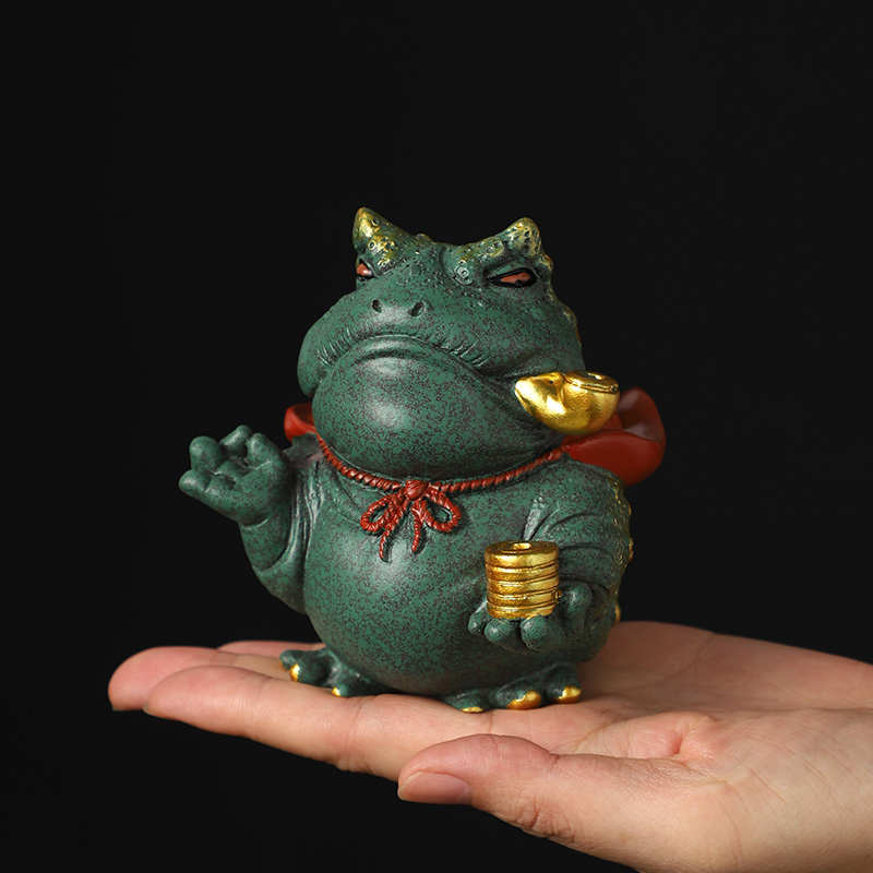 掐指一算青砂石瑞兽国风招财金蟾桌面茶宠造景装饰工艺品礼品摆件