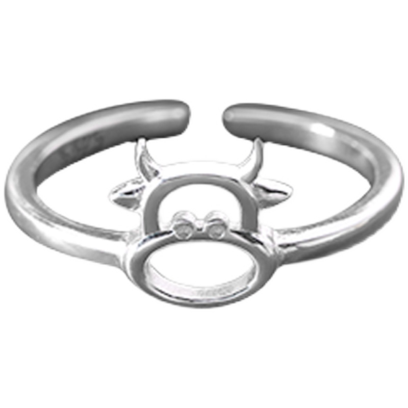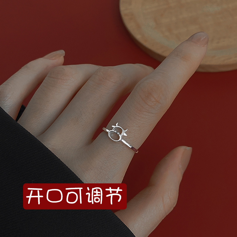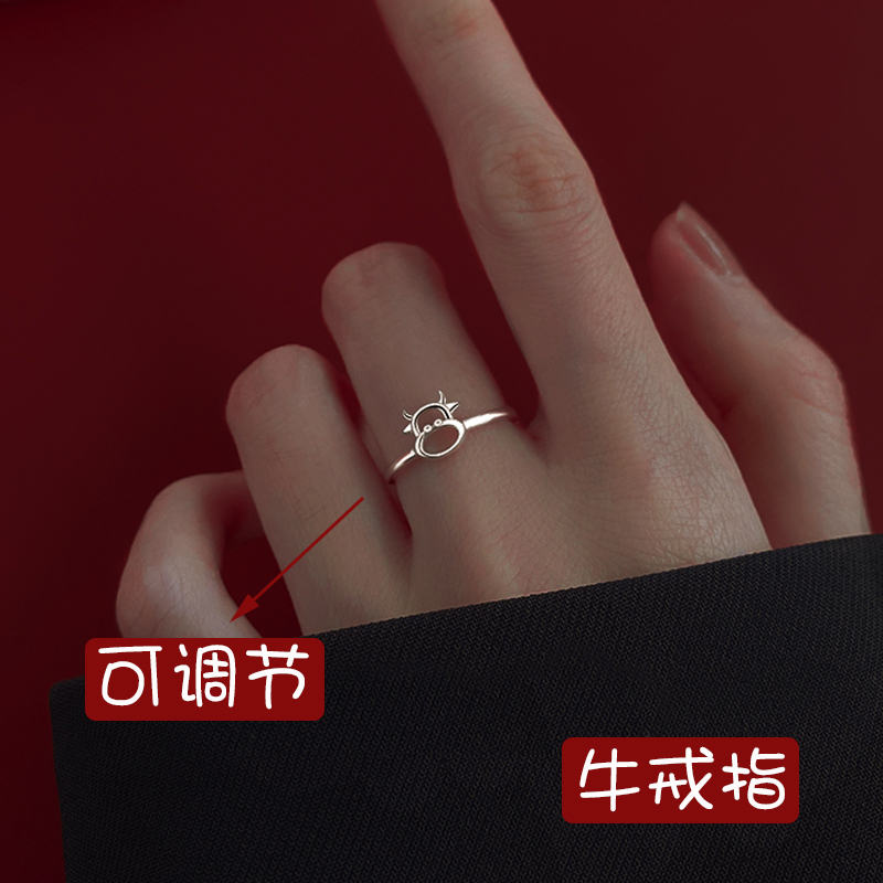 牛食指戒指纯银女小众设计冷淡风ins潮可调节不掉色开口简约学生