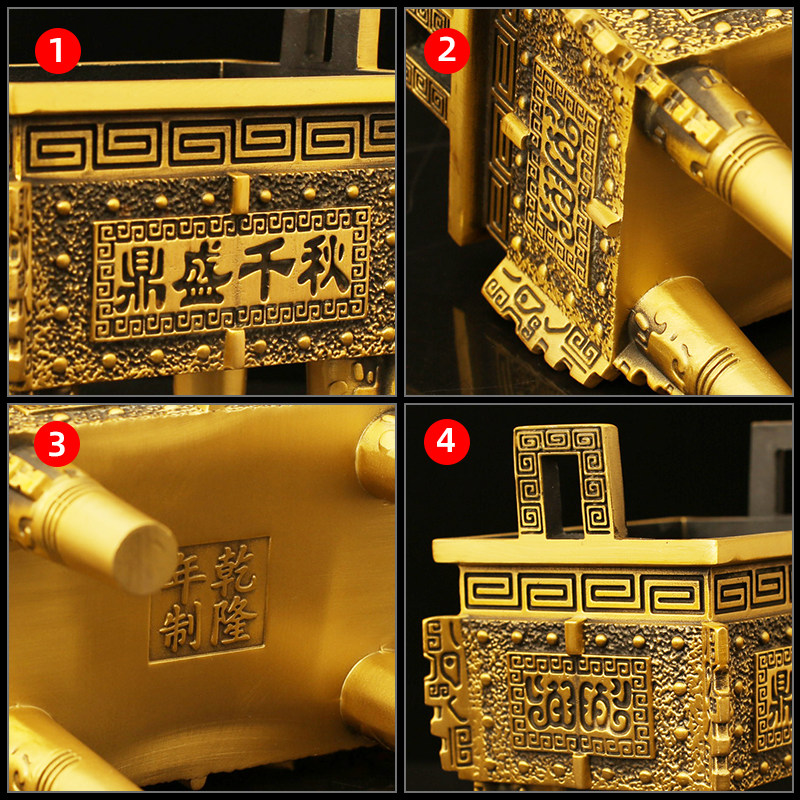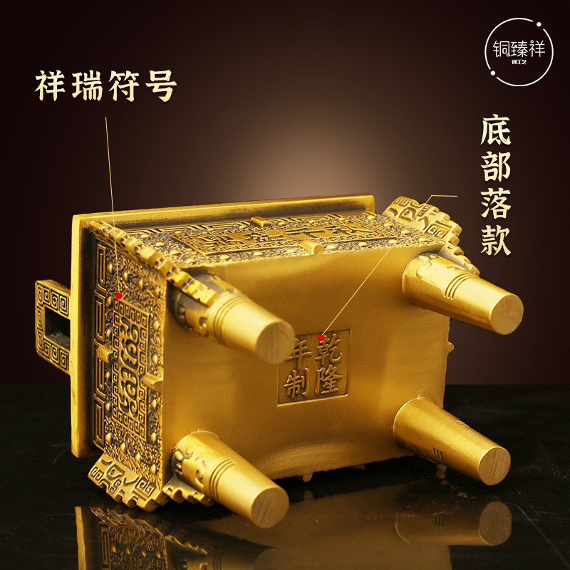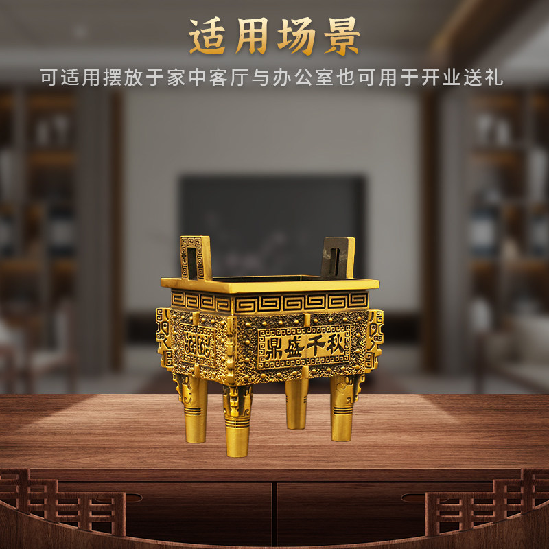 铜鼎纯黄铜四方鼎四足铜财富宝鼎香炉大号饭店客厅办公室玄关摆件