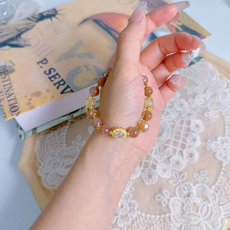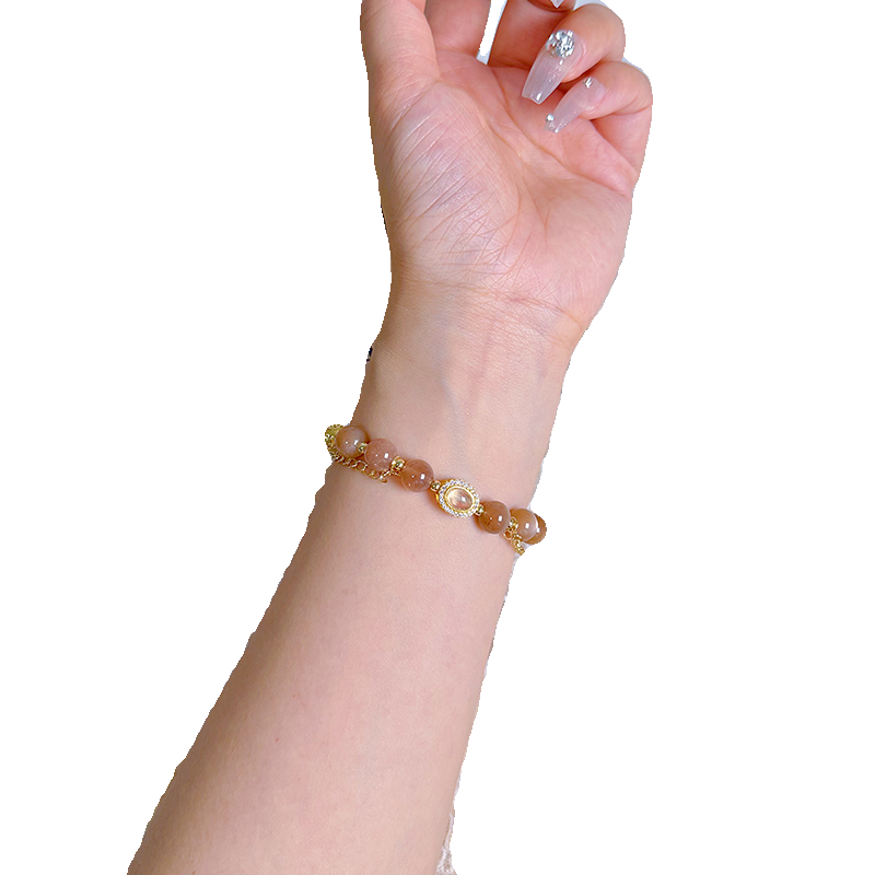 天然满金沙橙色太阳日光石手串冰岛橙月光石手链女猫眼石黄色闪光