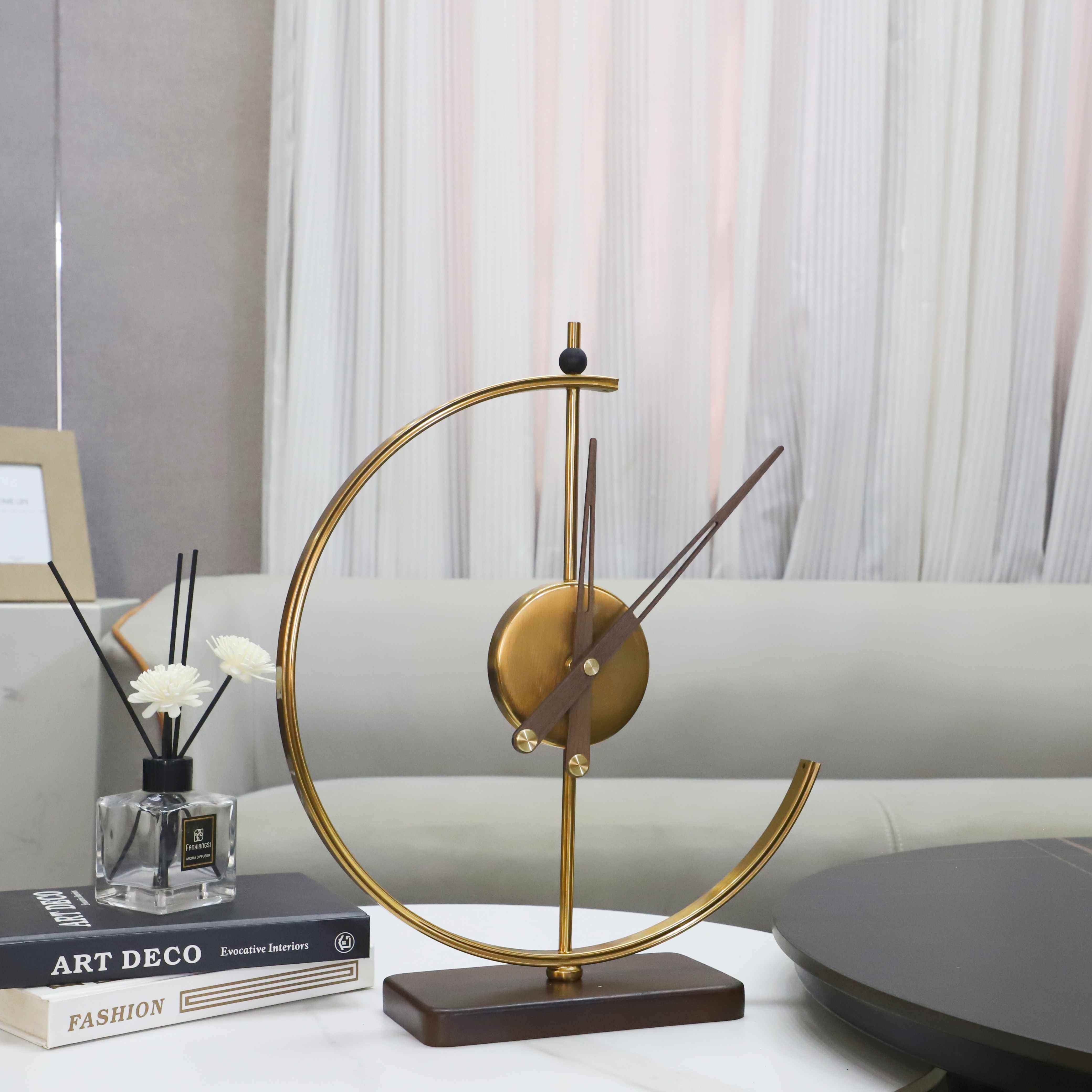 现代简约高档几何台钟座钟桌面摆件客厅玄关酒店样板间家居装饰品
