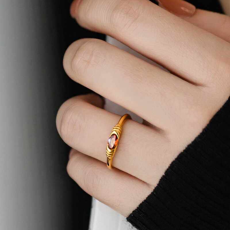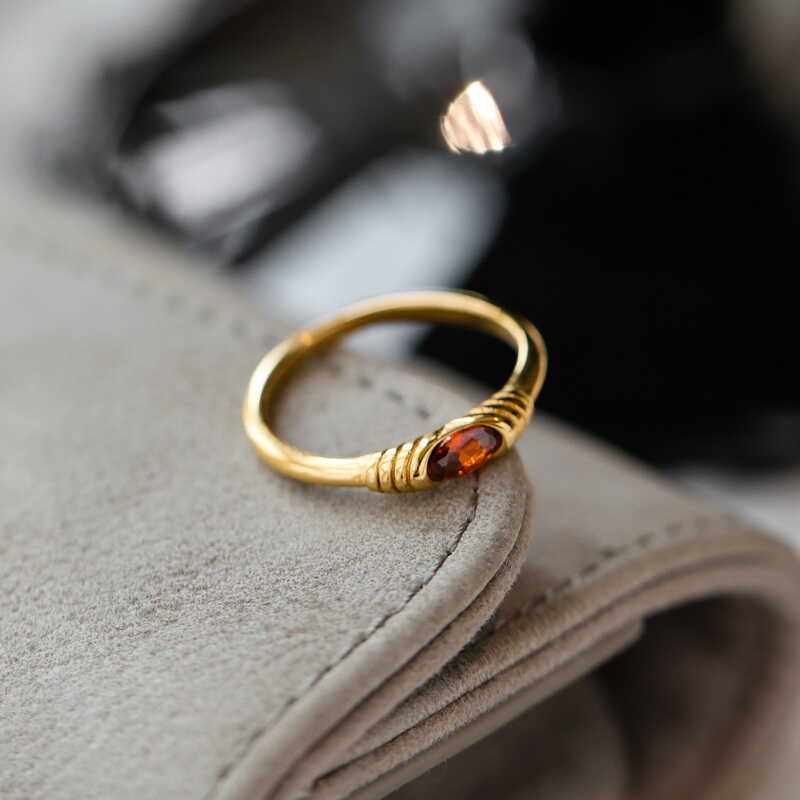 【可戴洗澡】法式复古红色宝石镀18K金戒指女时尚百搭轻奢小众潮