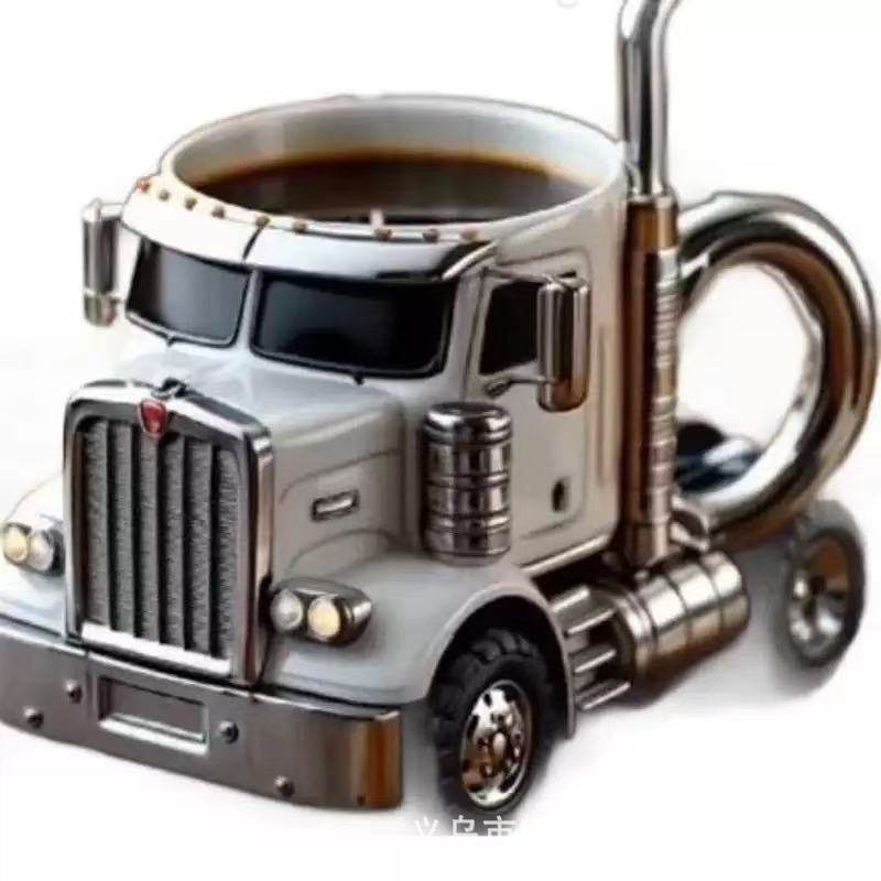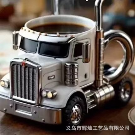 新款欧式手工卡车咖啡杯树脂工艺品桌面汽车摆件高级感小众