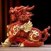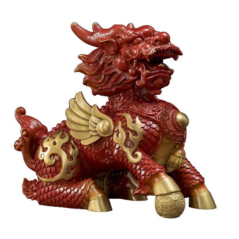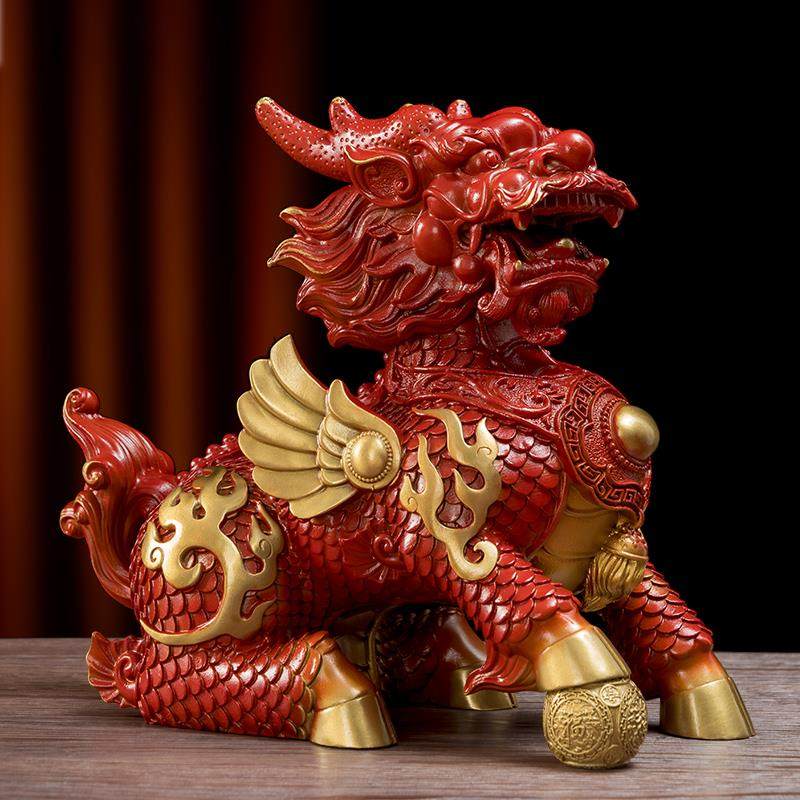 全铜火麒麟摆件公母一对红色公母纯铜黄铜家居办公室客厅玄关装饰