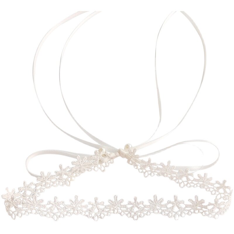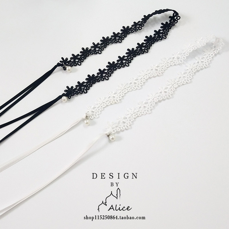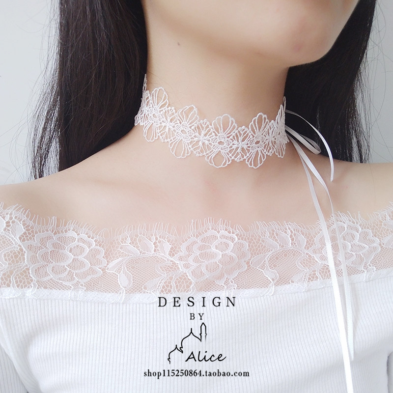 早春蕾丝绑带choker白色脖子饰品礼服配饰项圈系带女珍珠气质项链