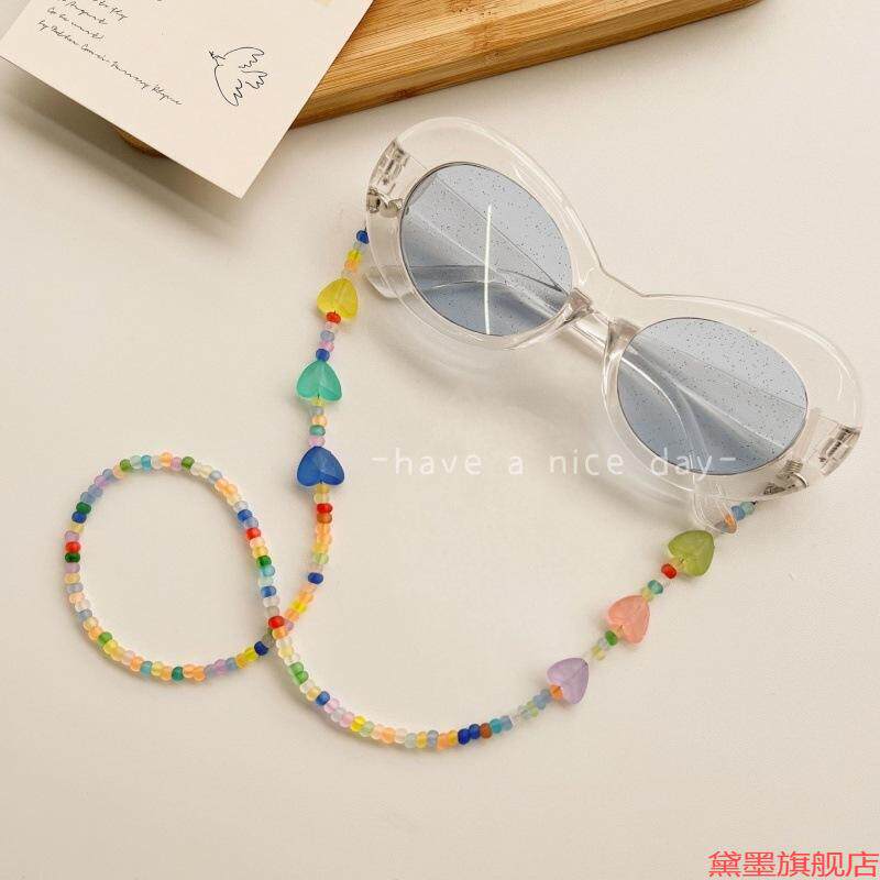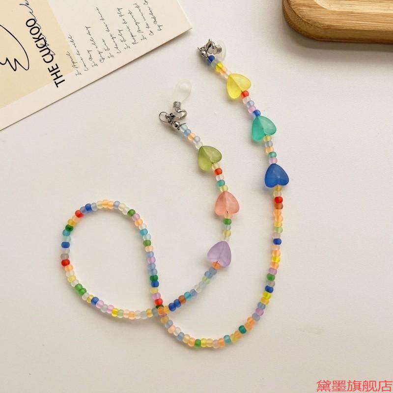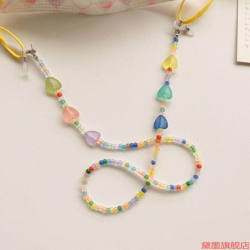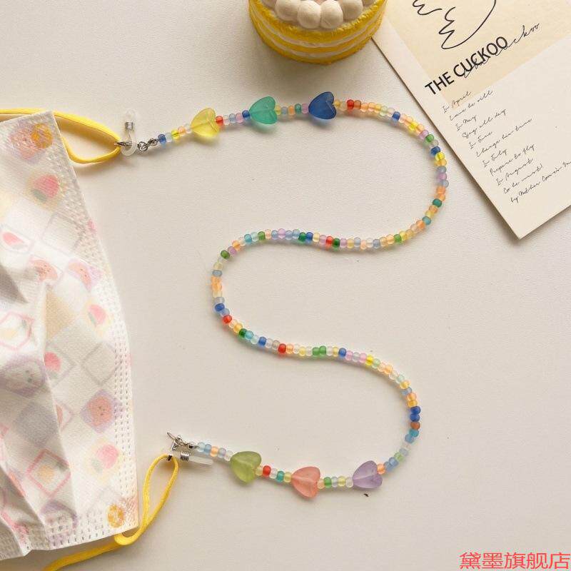 眼镜链口罩链绿色串珠挂绳珠串米珠手机链爱心款韩国成人小清新绳