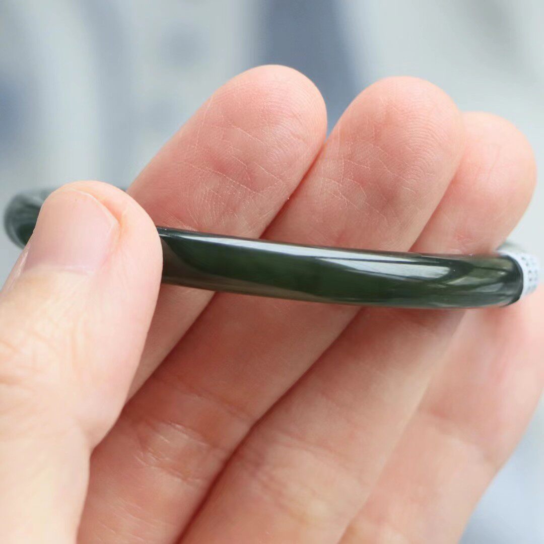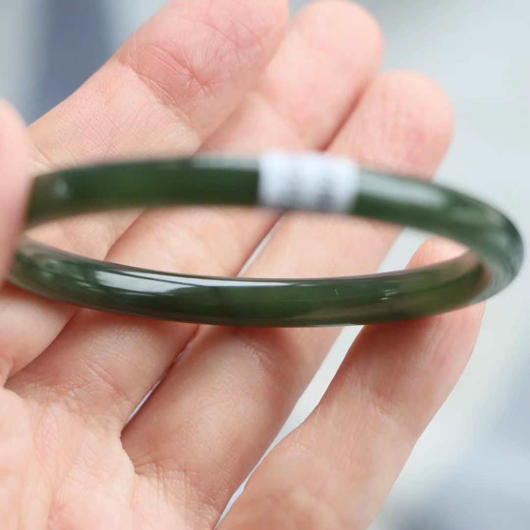 保真天然和田玉手镯52圈口证书9260895和田玉湖绿色 青海料圆条
