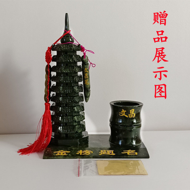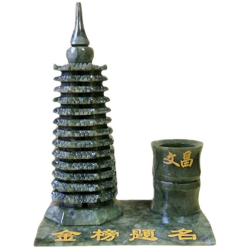 天然玉石岫玉绿色文昌塔笔筒摆件九9层13十三层工艺礼品书桌饰品