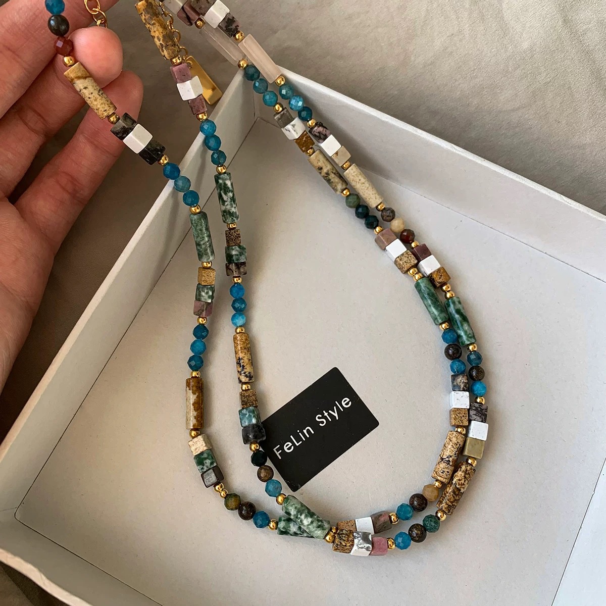 媛优 天然彩色石头串珠项链多巴胺宝蓝色2025新款轻奢感颈链