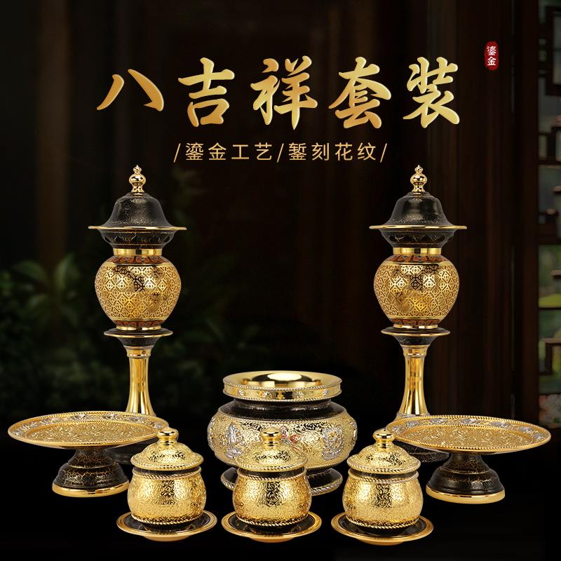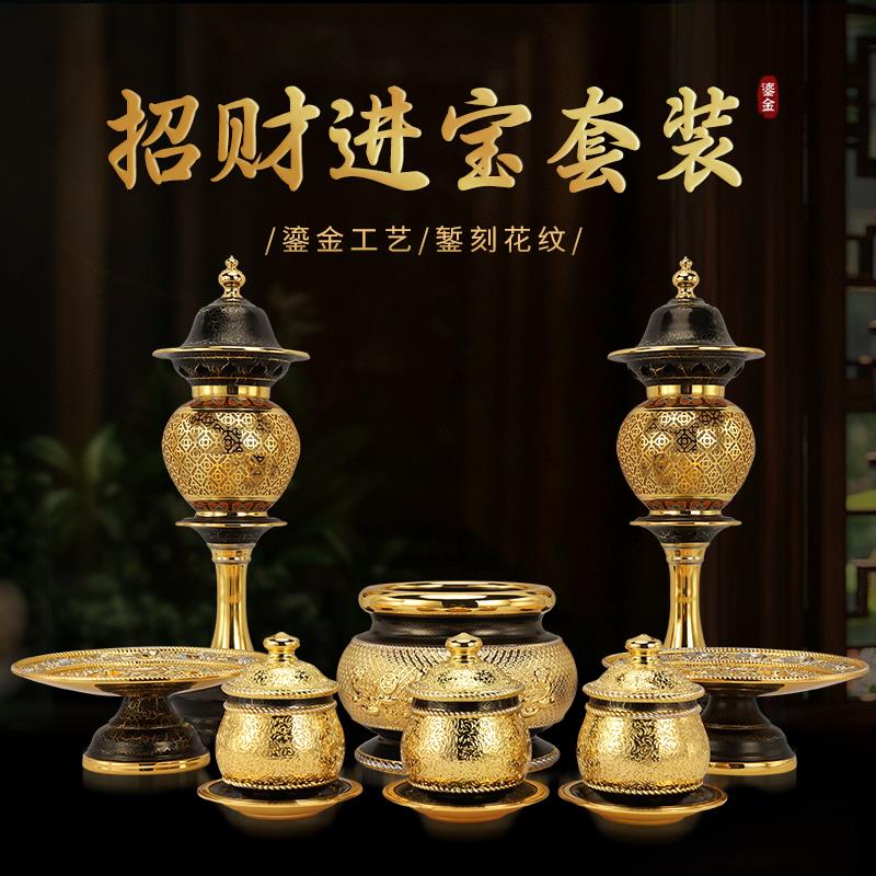 纯铜鎏金供佛套装全套关公财神爷供奉用品家用佛前敬神礼佛具上供