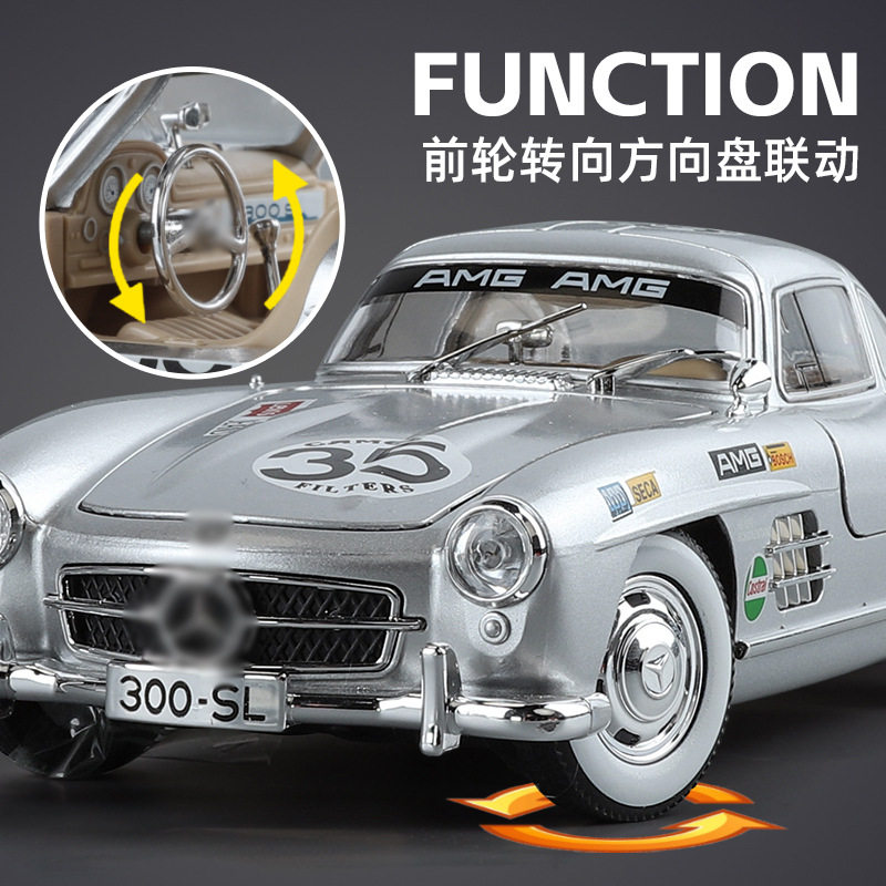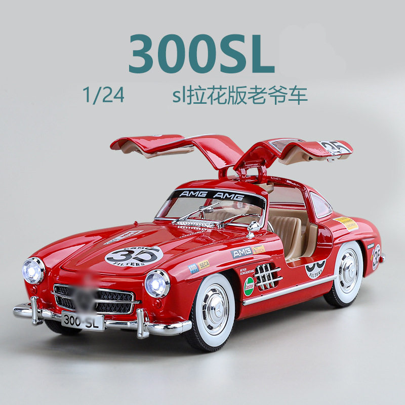金丽方1:24复古300SL拉花版声光回力车玩具摆件仿真合金汽车模型