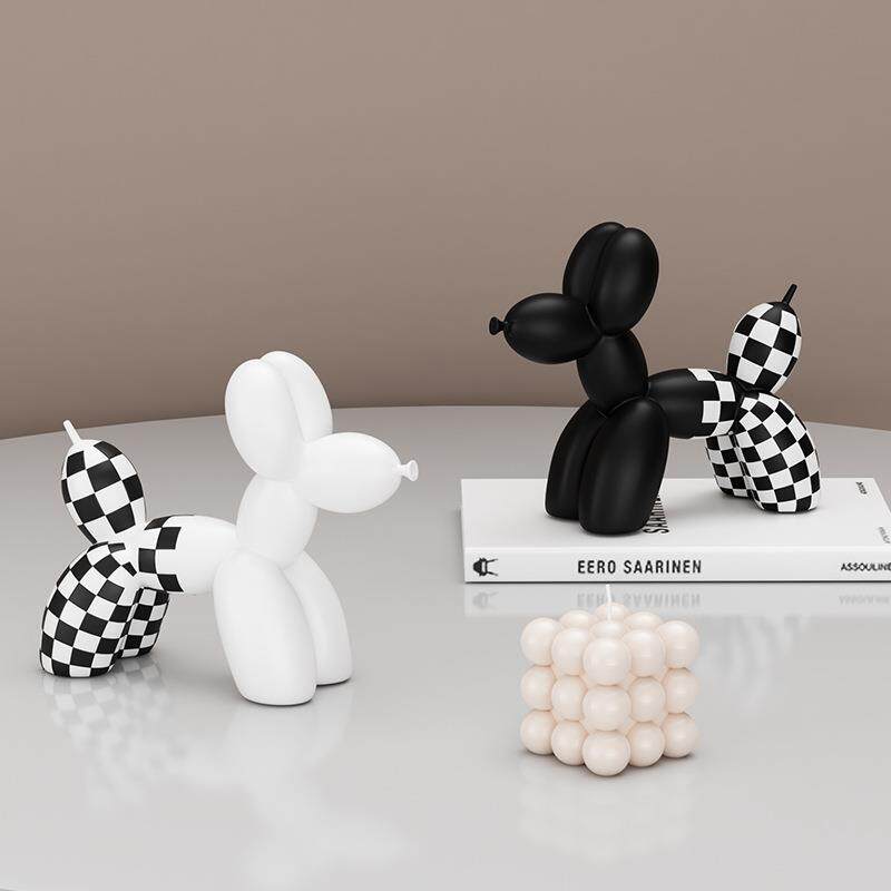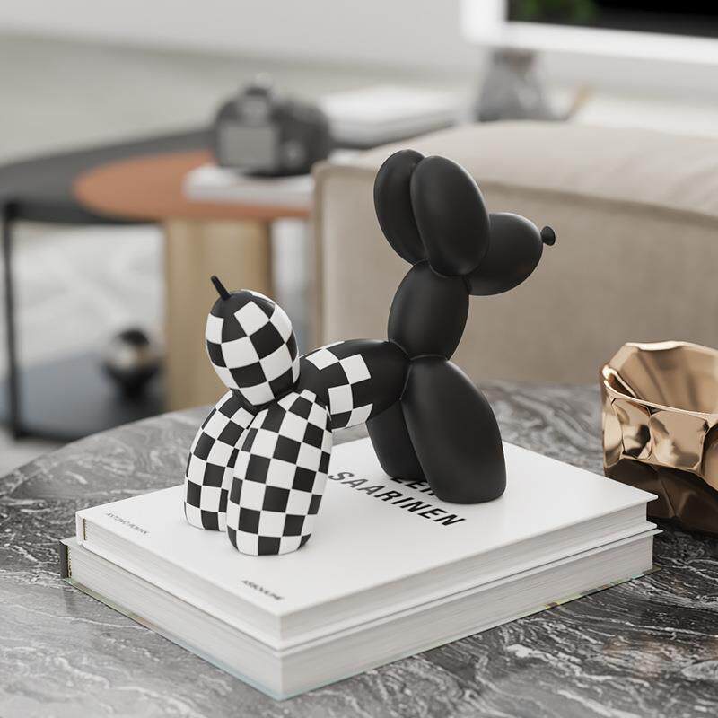 北欧风黑白格子创意气球狗家居软装饰品书房酒柜儿童房个性摆件