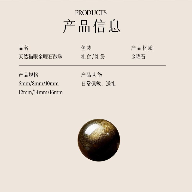 遇见普陀山天然黑曜石散珠子猫眼金曜石配珠单珠手串diy串珠配件