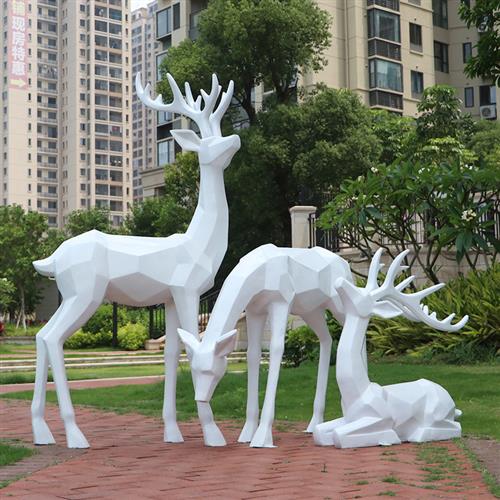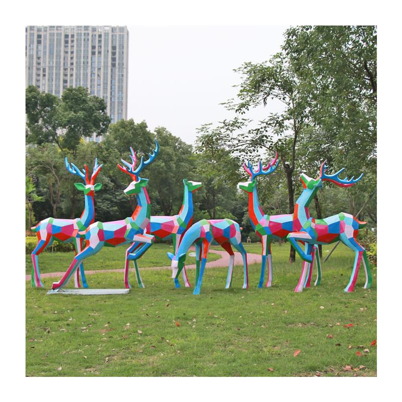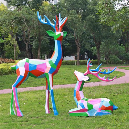 户外园林景观动物装饰玻璃钢七彩几何梅花鹿雕塑小区公园草坪摆件