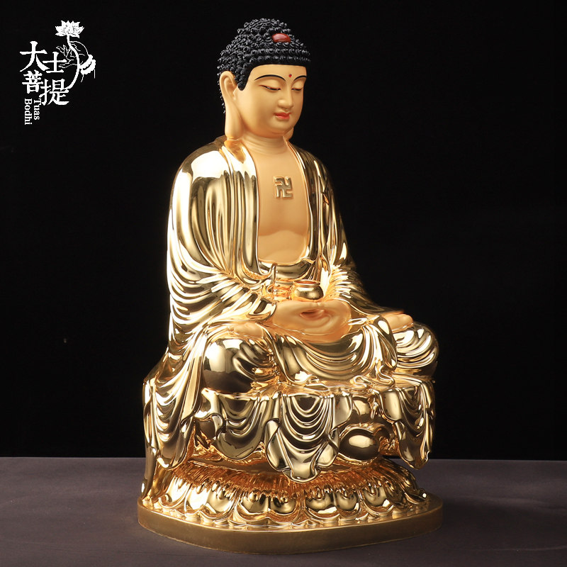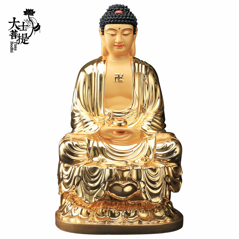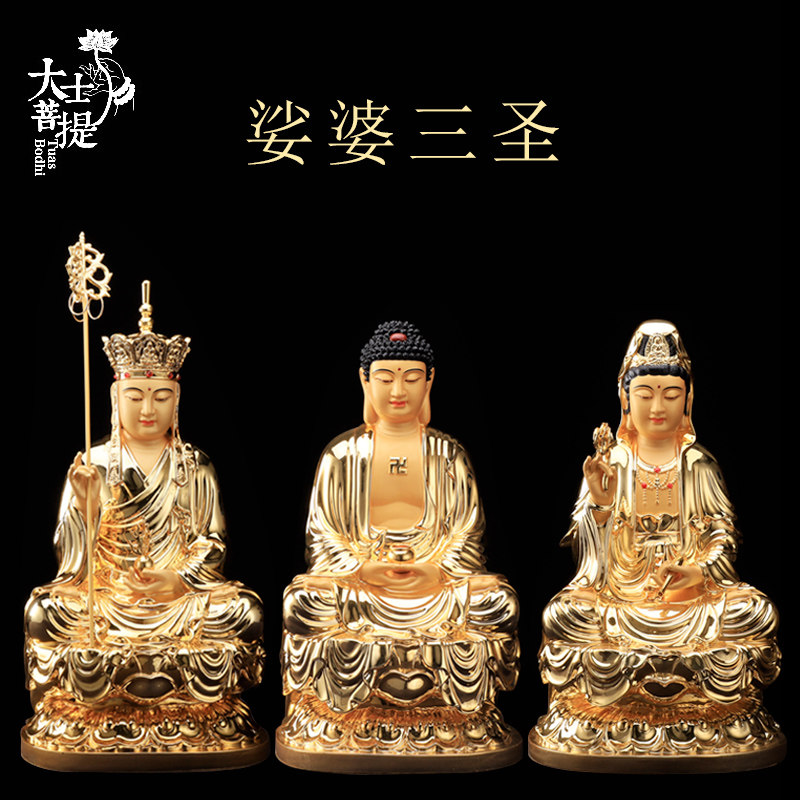 速发鎏金纯药释迦牟尼佛阿弥陀佛像师宝佛佛像如来佛祖铜三佛摆件