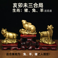白色陶瓷描金十二地支生肖猴鼠龙三合贵人局摆件申子辰风水工艺品