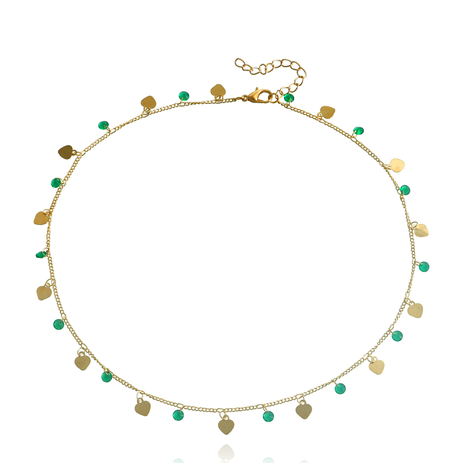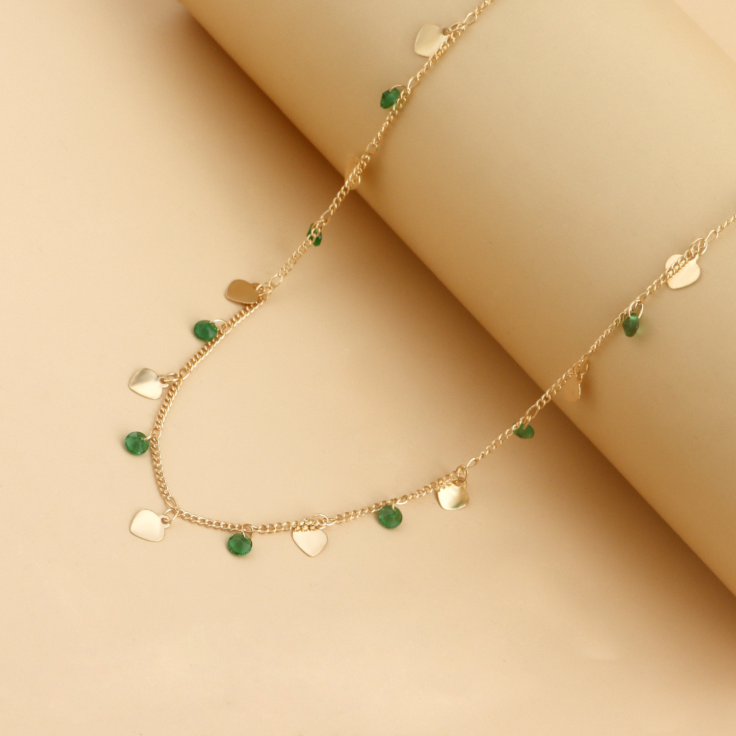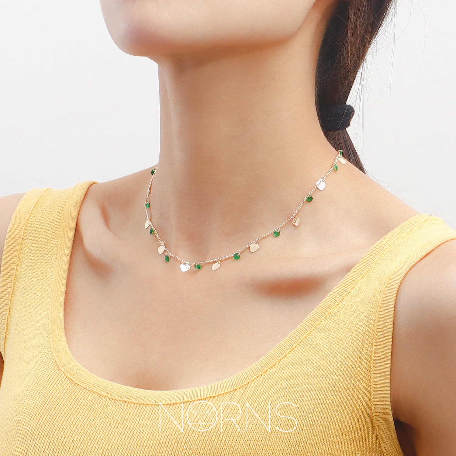 Norns印度肚皮舞舞者风格绿宝石金属吊饰绿色水钻锆石锁骨链项链