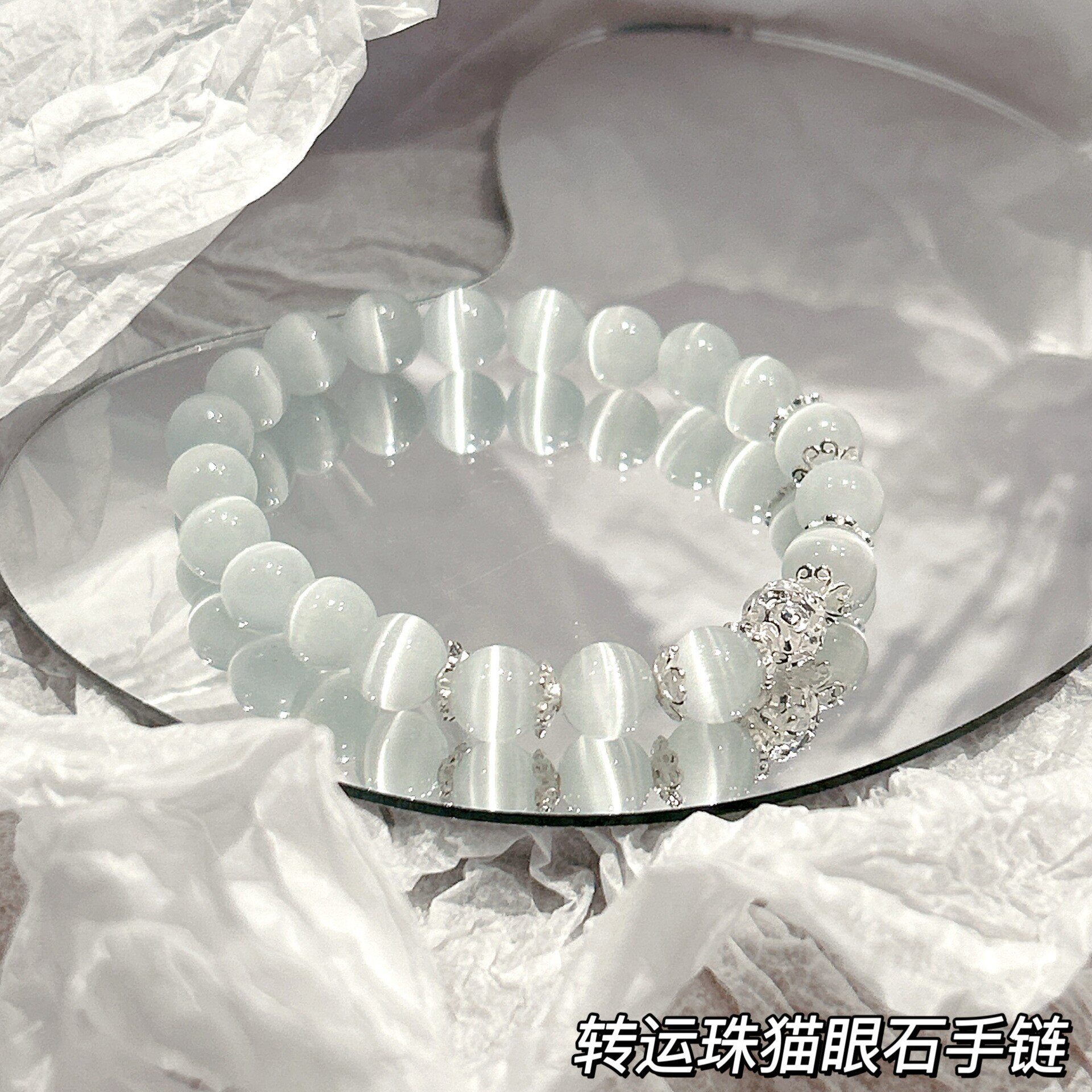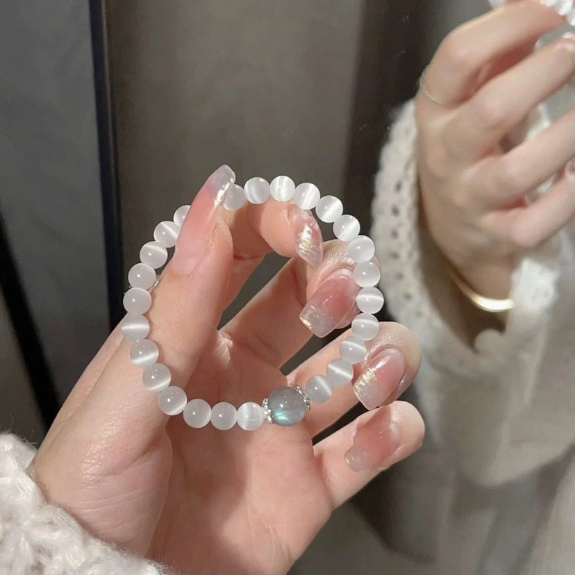 猫眼石手链女款夏海蓝宝石轻奢小众精致感转运珠水晶蓝色送女友