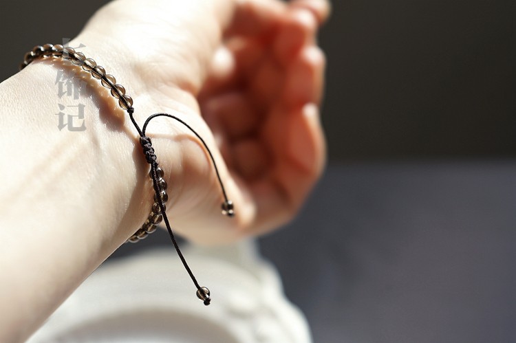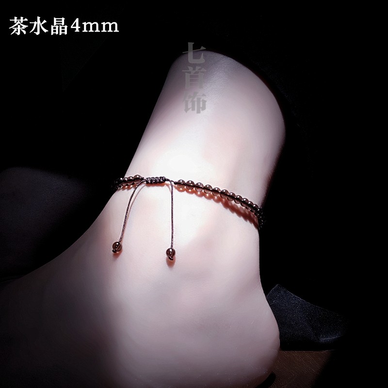 除霉运!7A烟晶茶晶珠珠手链茶水晶手串可调节脚链情侣简单大方男