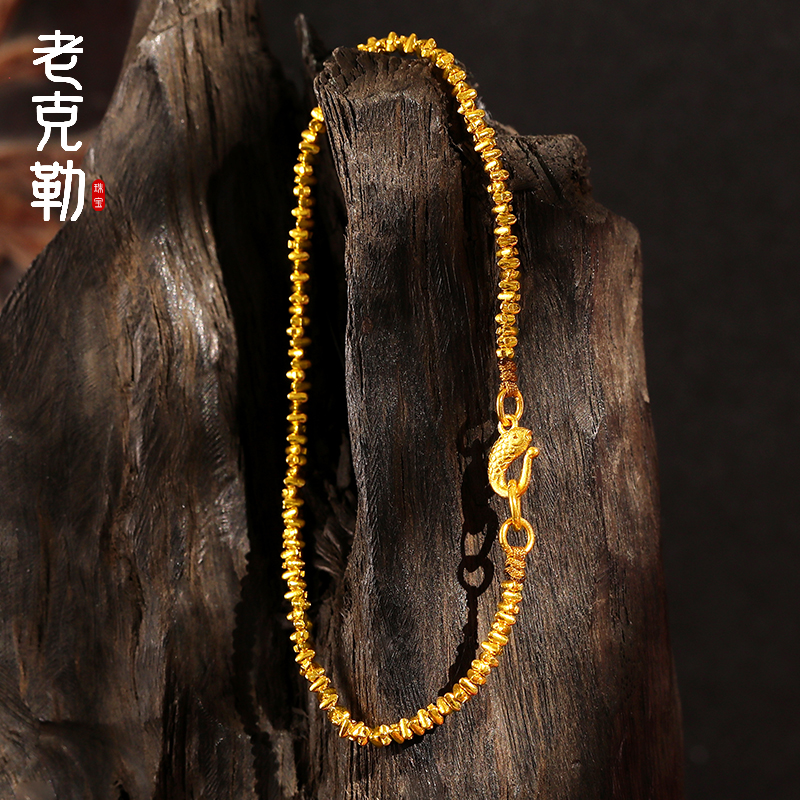 老克勒古法黄金手链足金999三角碎金子隔珠小粽子串珠编织手串女