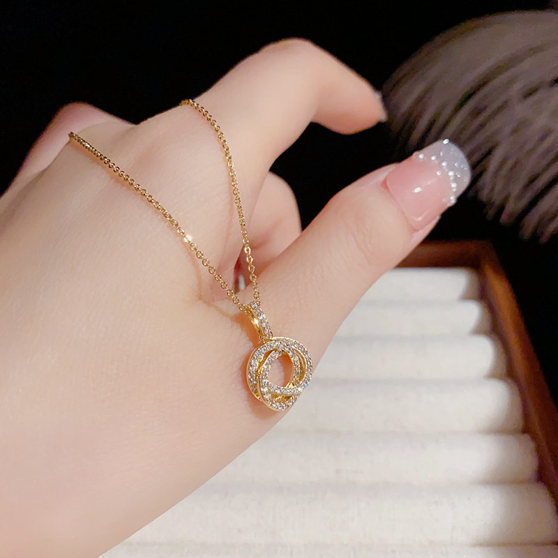 简约超闪时尚轻奢甜美微镶圆环项链小众设计气质毛衣链百搭锁骨链