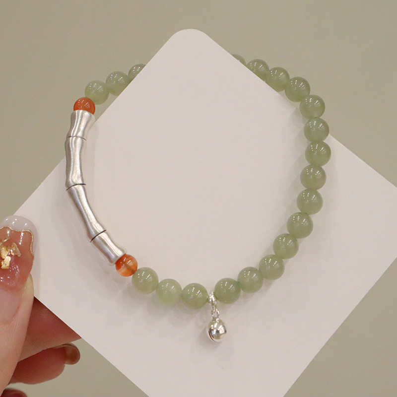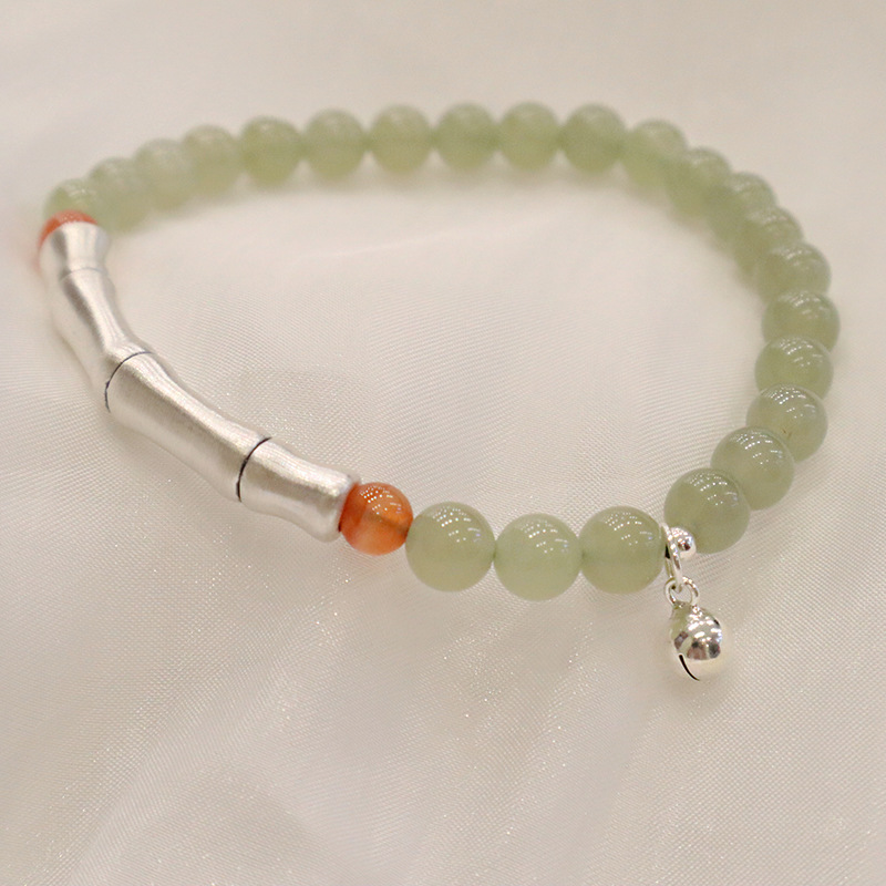 天然和田玉手链女小众气质纯银足银竹节手饰品小清新新中式手串