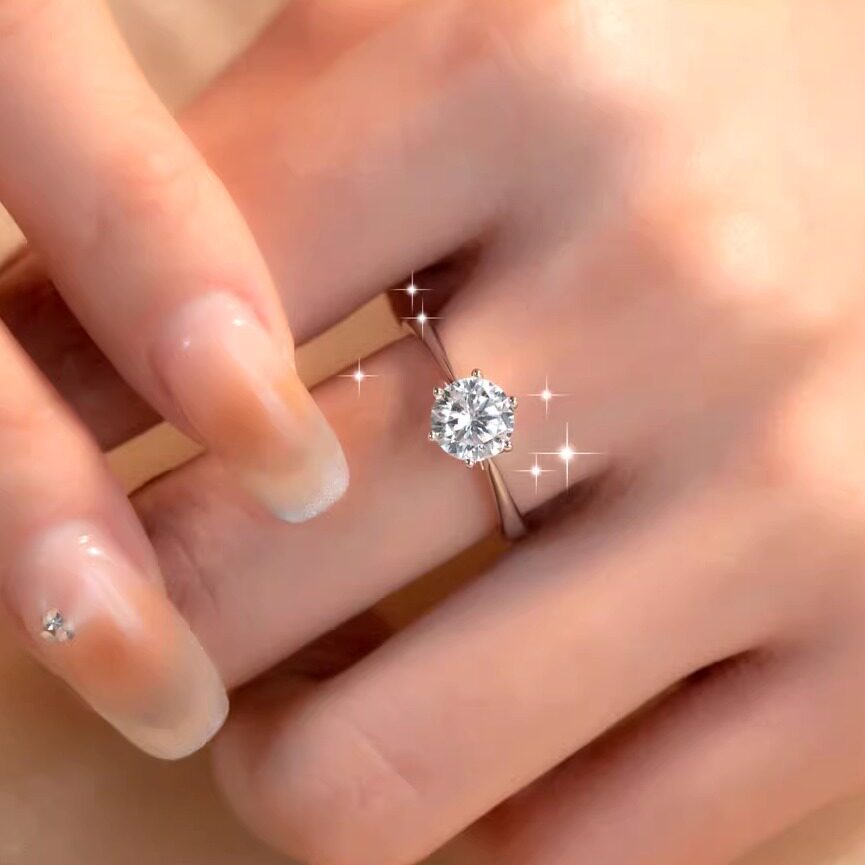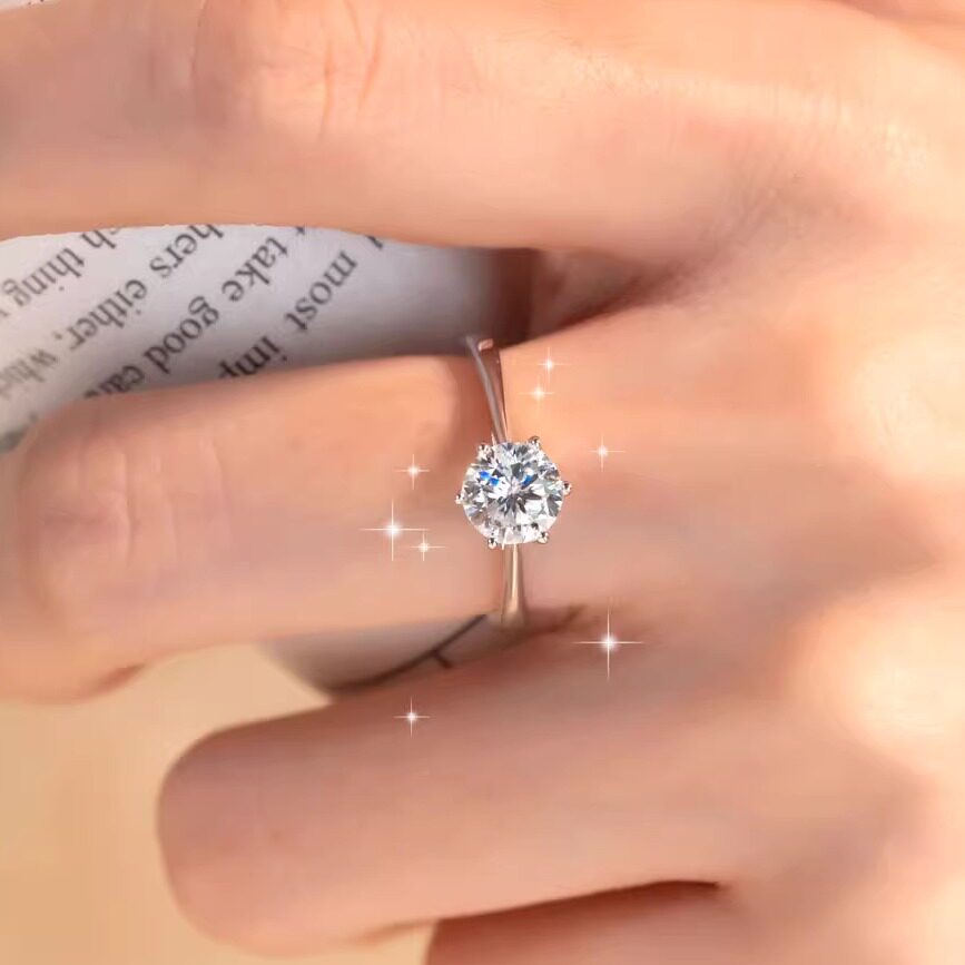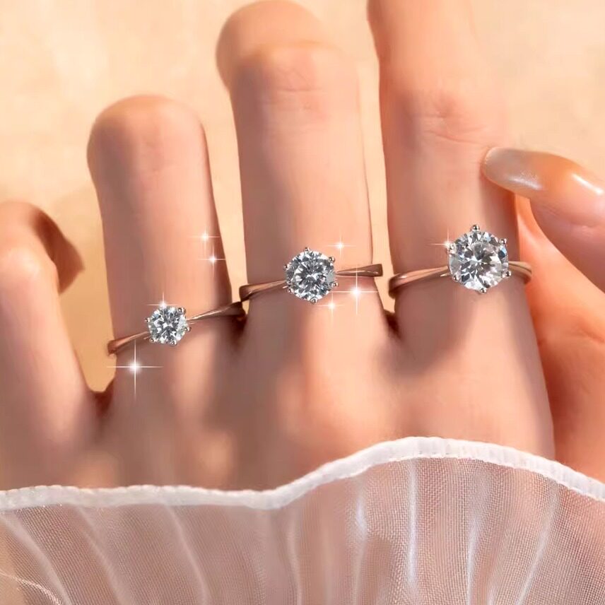 S925莫桑戒指经典六爪单钻50分80分1克拉钻戒可调节求婚镀银戒指