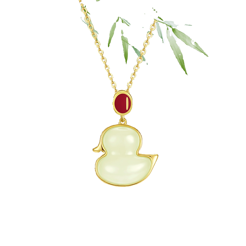 和田玉项链小萌鸭吊坠动物玉石颈链高级感轻奢饰品纯银送女友闺蜜