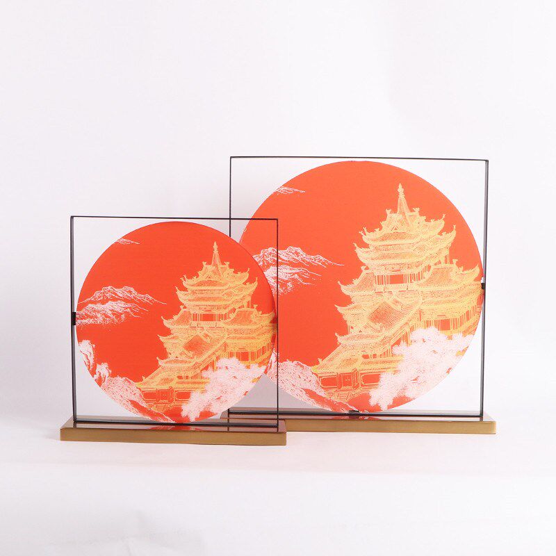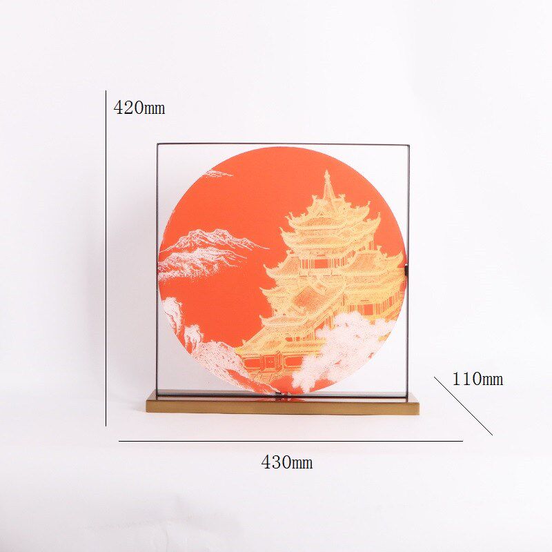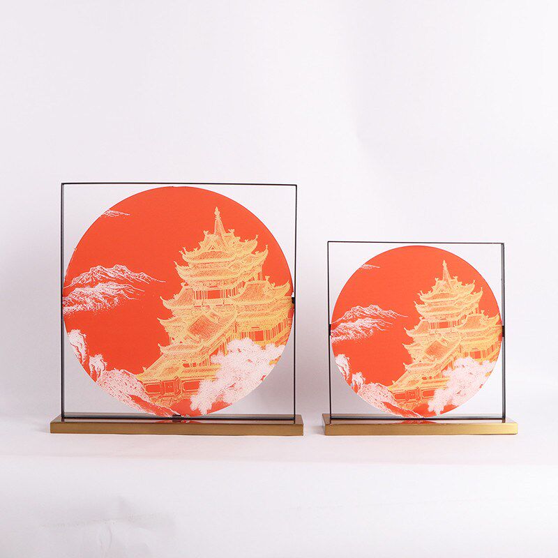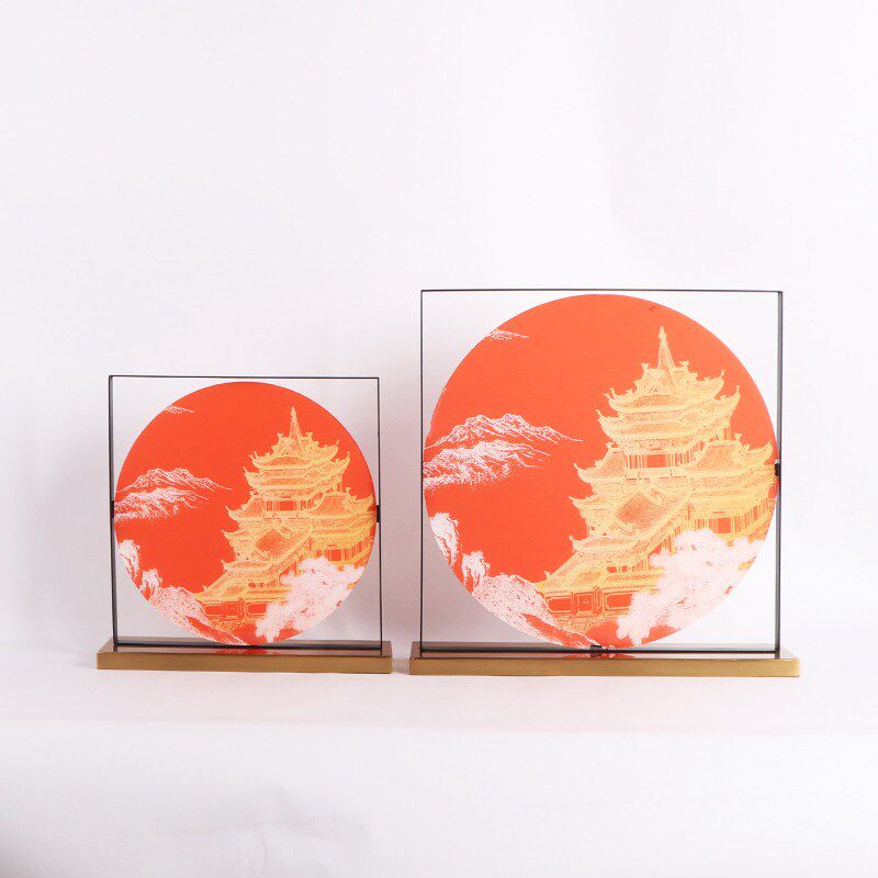 新中式金属亚克力楼阁屏风摆件z样板房玄关酒店大堂售楼处软装饰