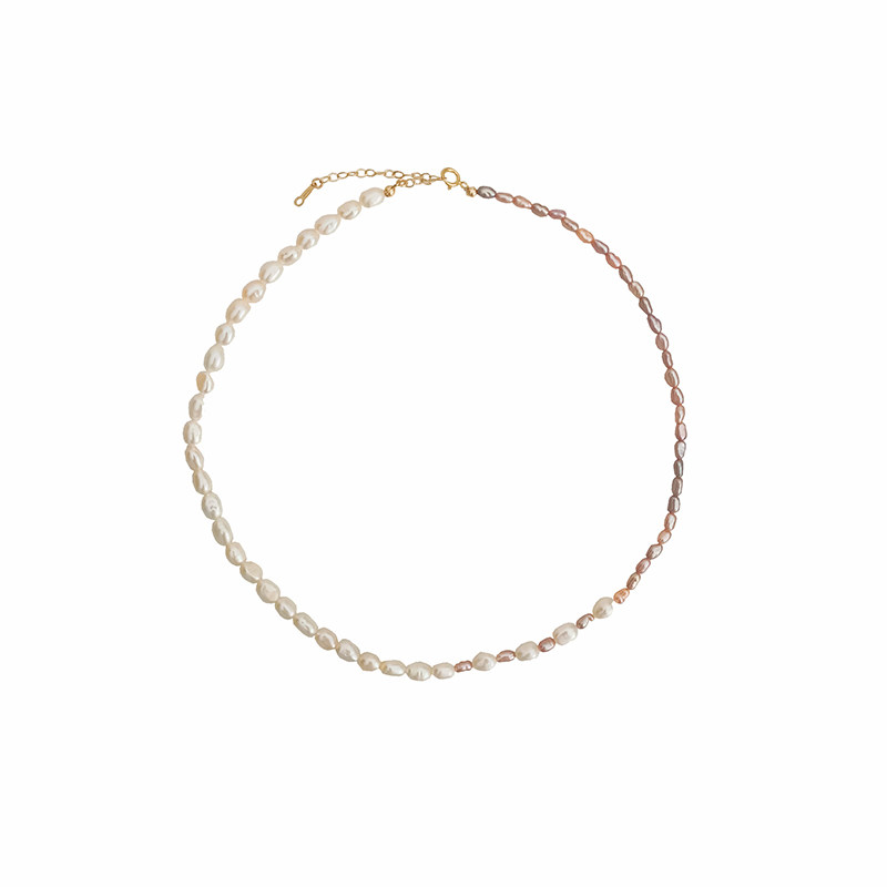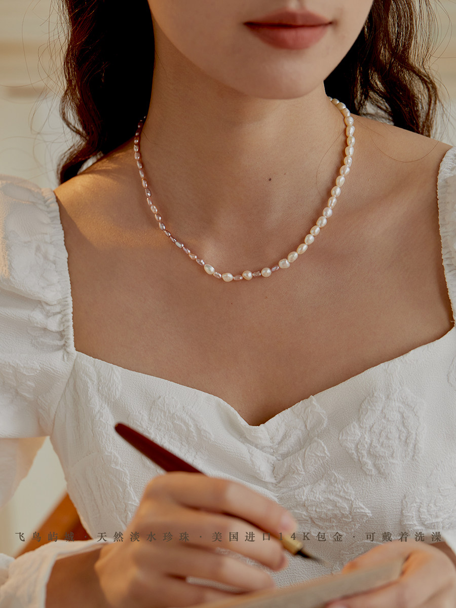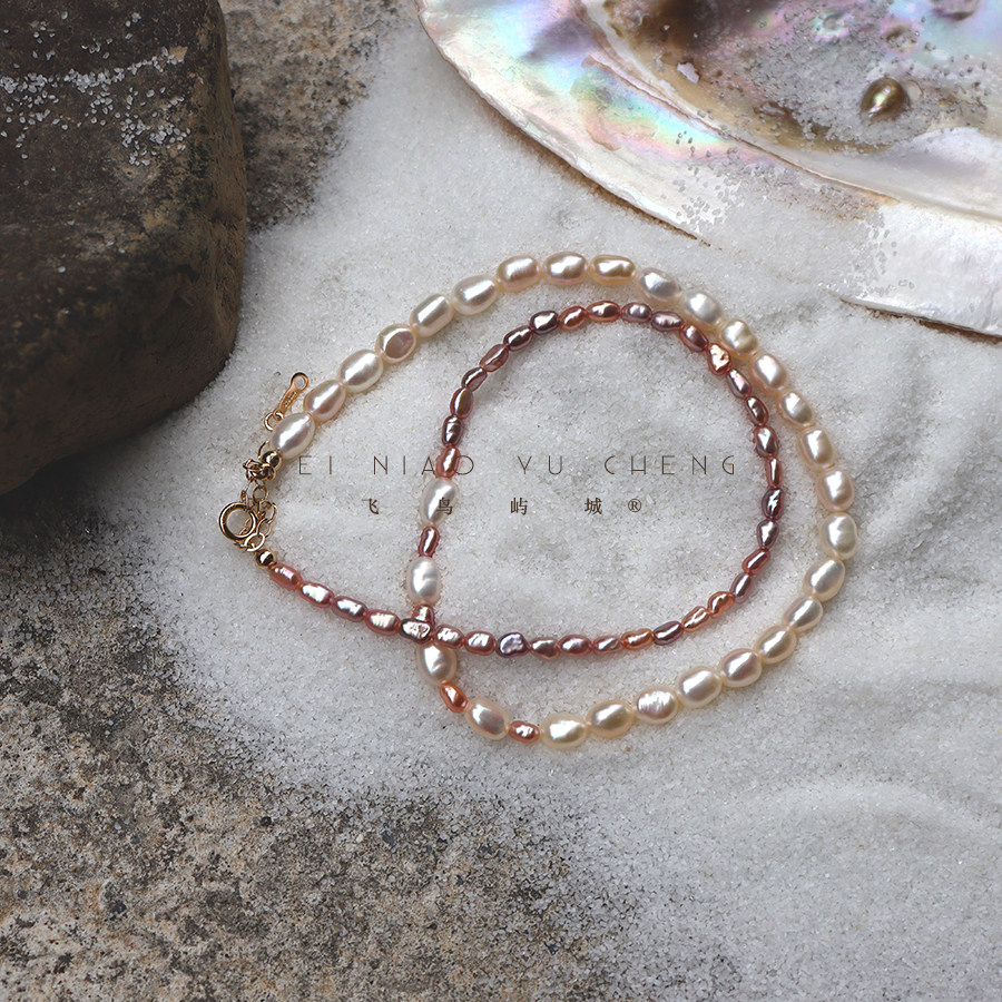 飞鸟屿城/薰衣草系列.白色紫色天然巴洛克珍珠项链拼色小众锁骨链