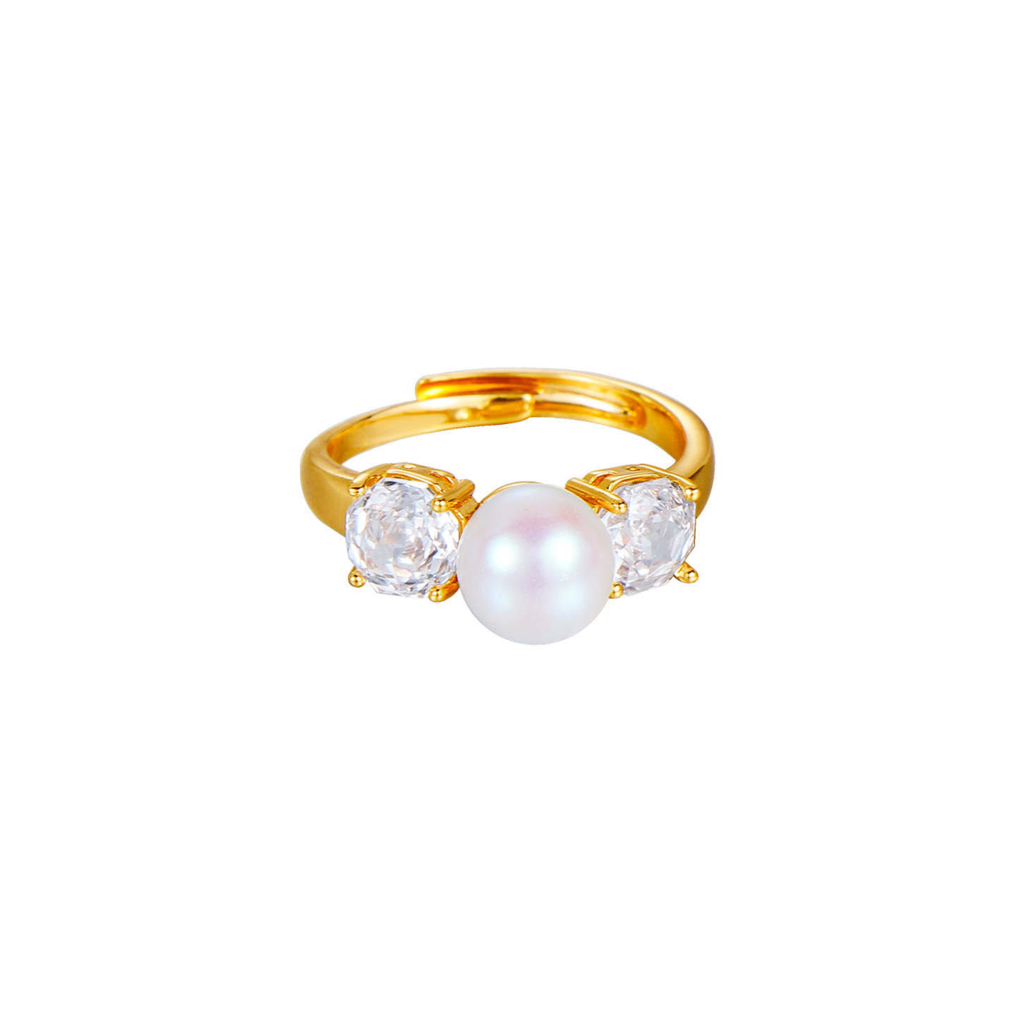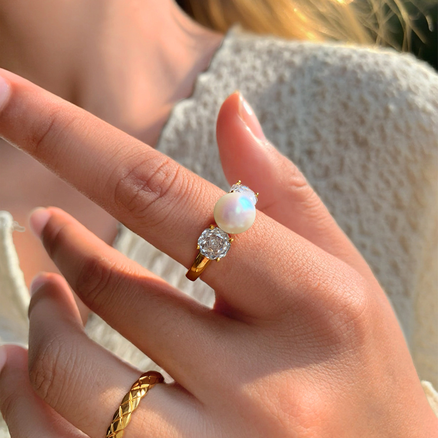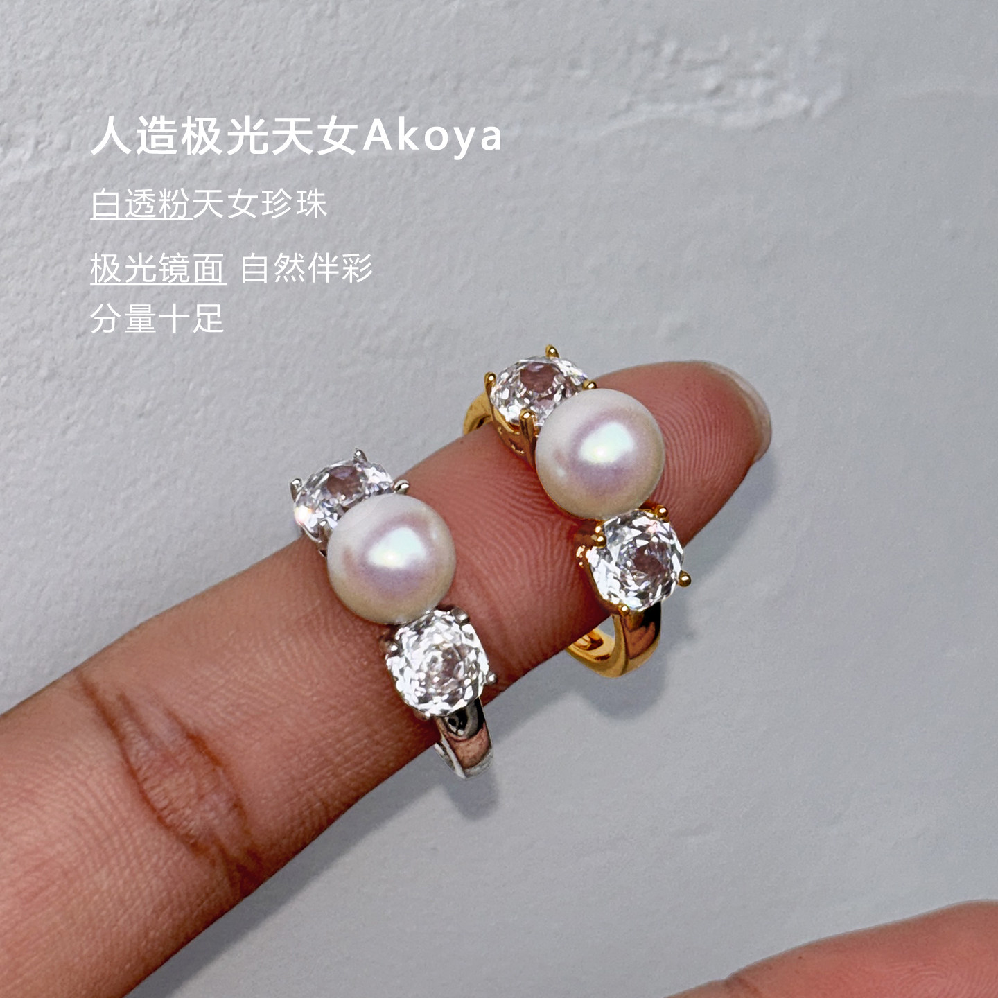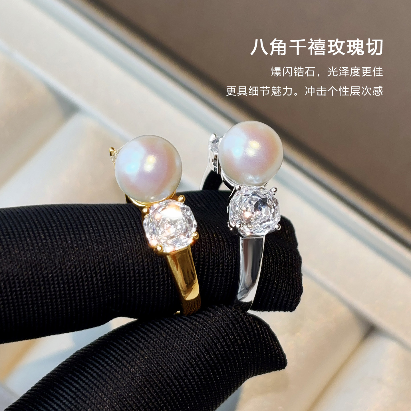 爆闪玫瑰切天女极光akoya珍珠戒指女轻奢小众设计开口食指戒指环