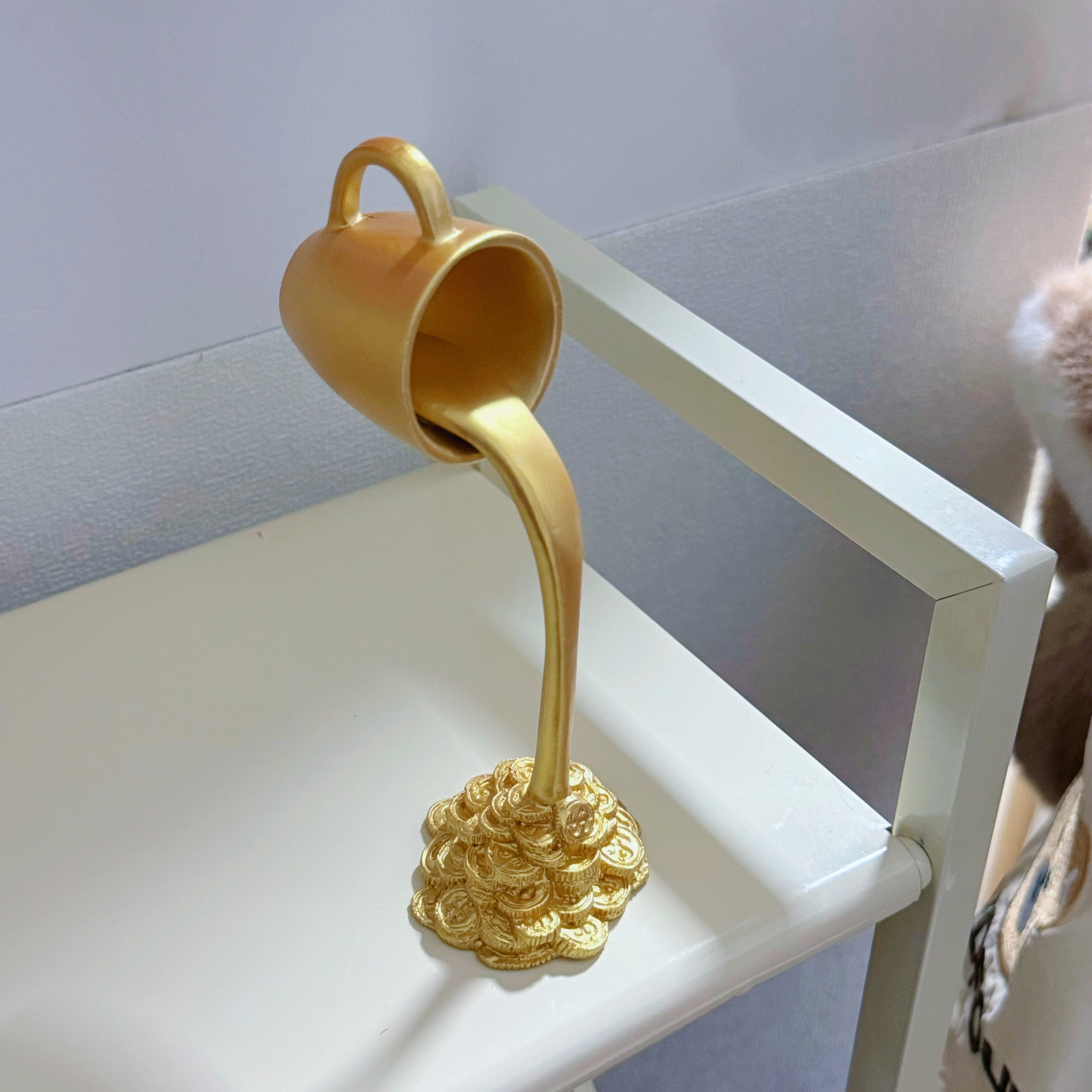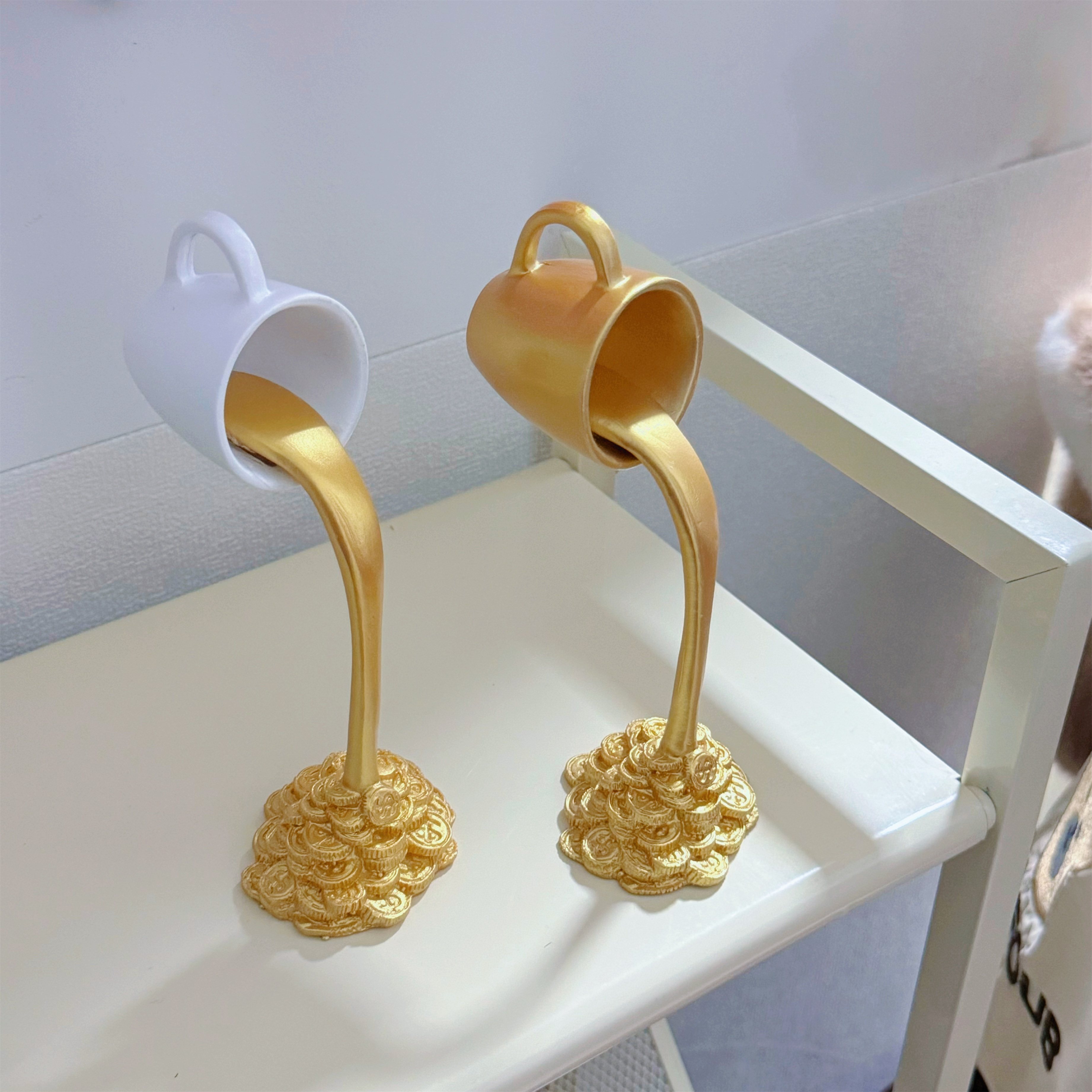 没钱倒点金币出来~创意咖啡流水马克杯摆件房间装饰品高级感摆件