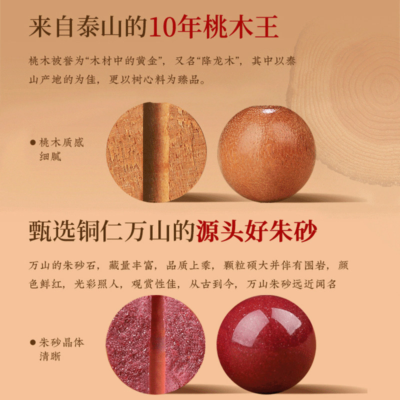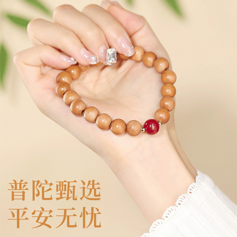 【普陀山直发】天然泰山老桃木质手串女款朱砂手链降龙护身符礼物